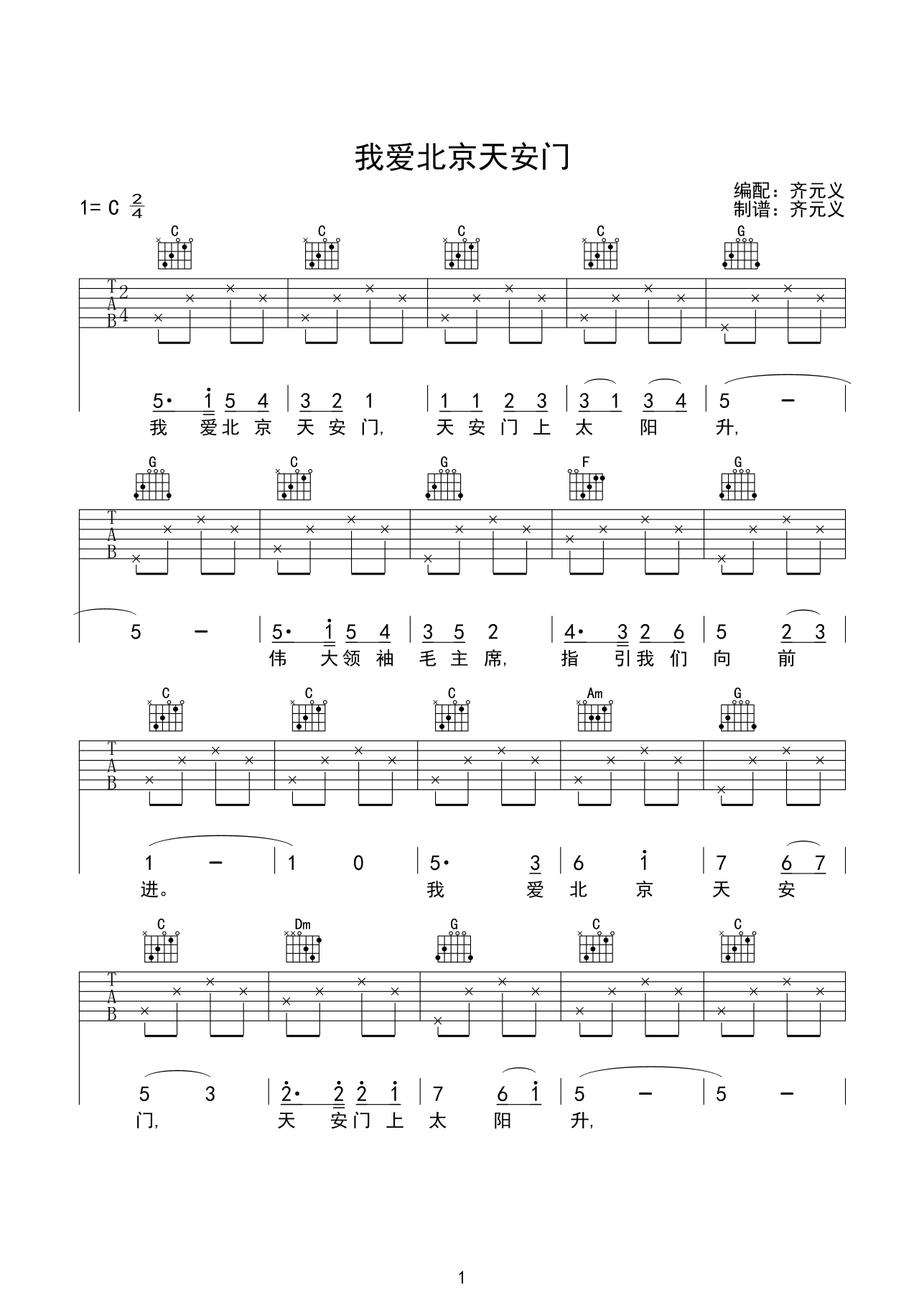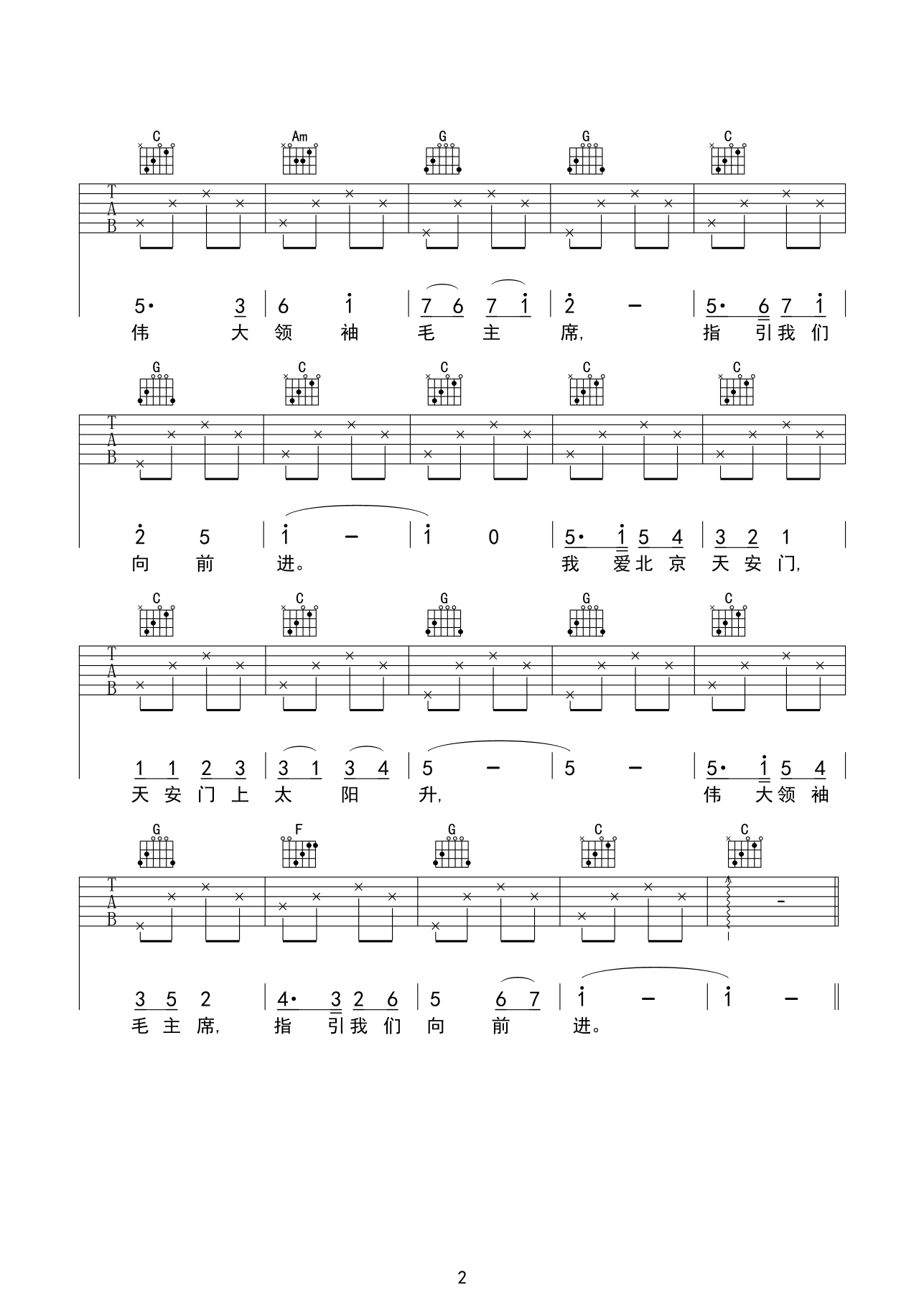 我爱北京天安门吉他谱 - 儿童歌曲 - 吉他弹唱谱