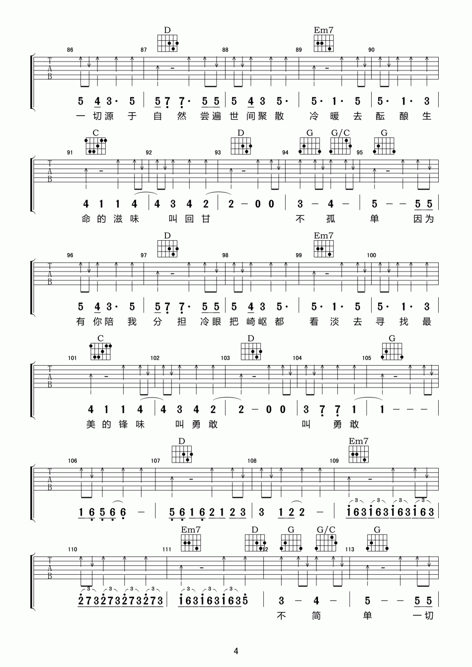 曲谱介绍: 谢霆锋《回甘》吉他弹唱谱,共有6张高清图谱。