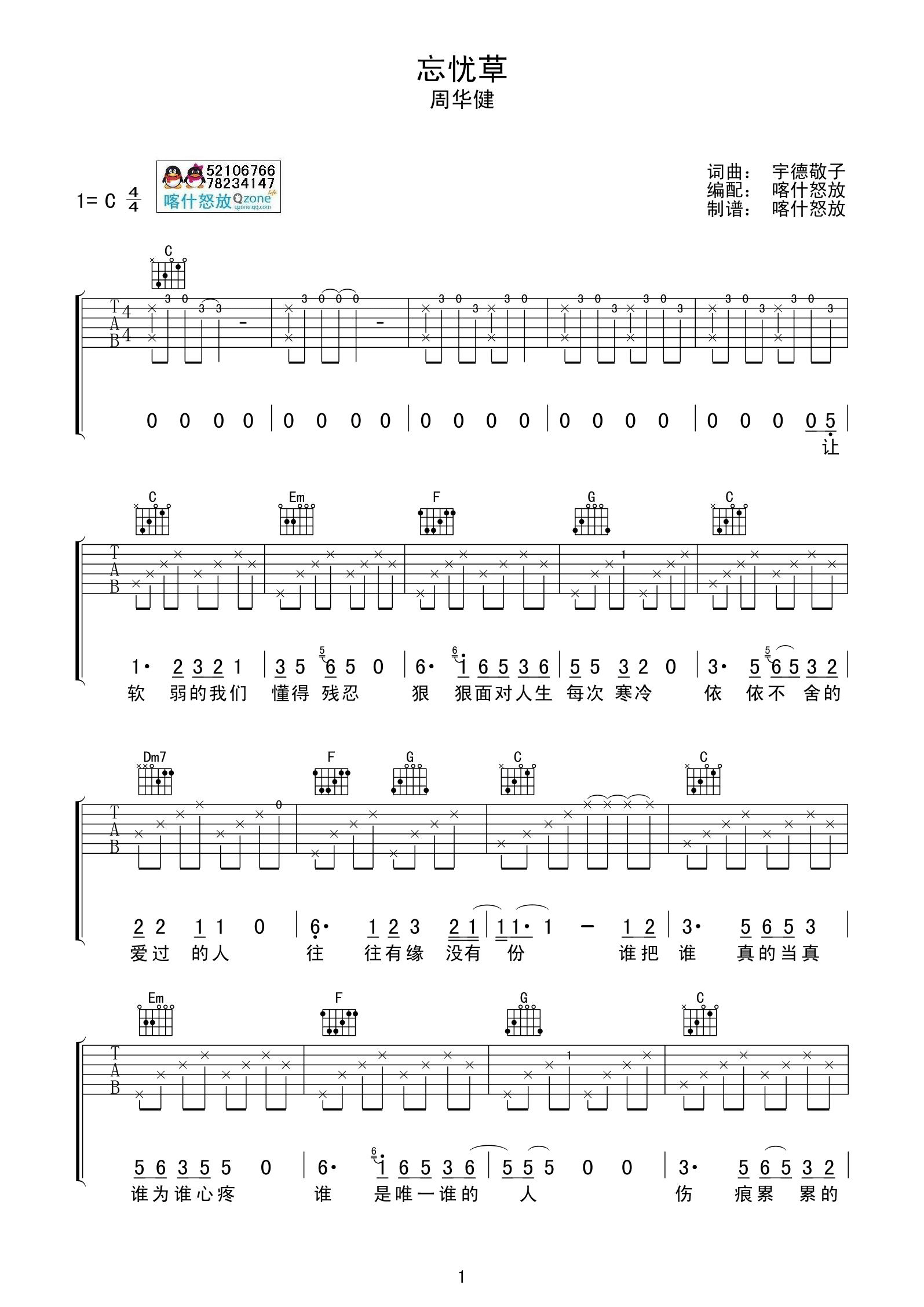 忘忧草 喀什怒放吉他谱 - 周华健 - 吉他弹唱谱