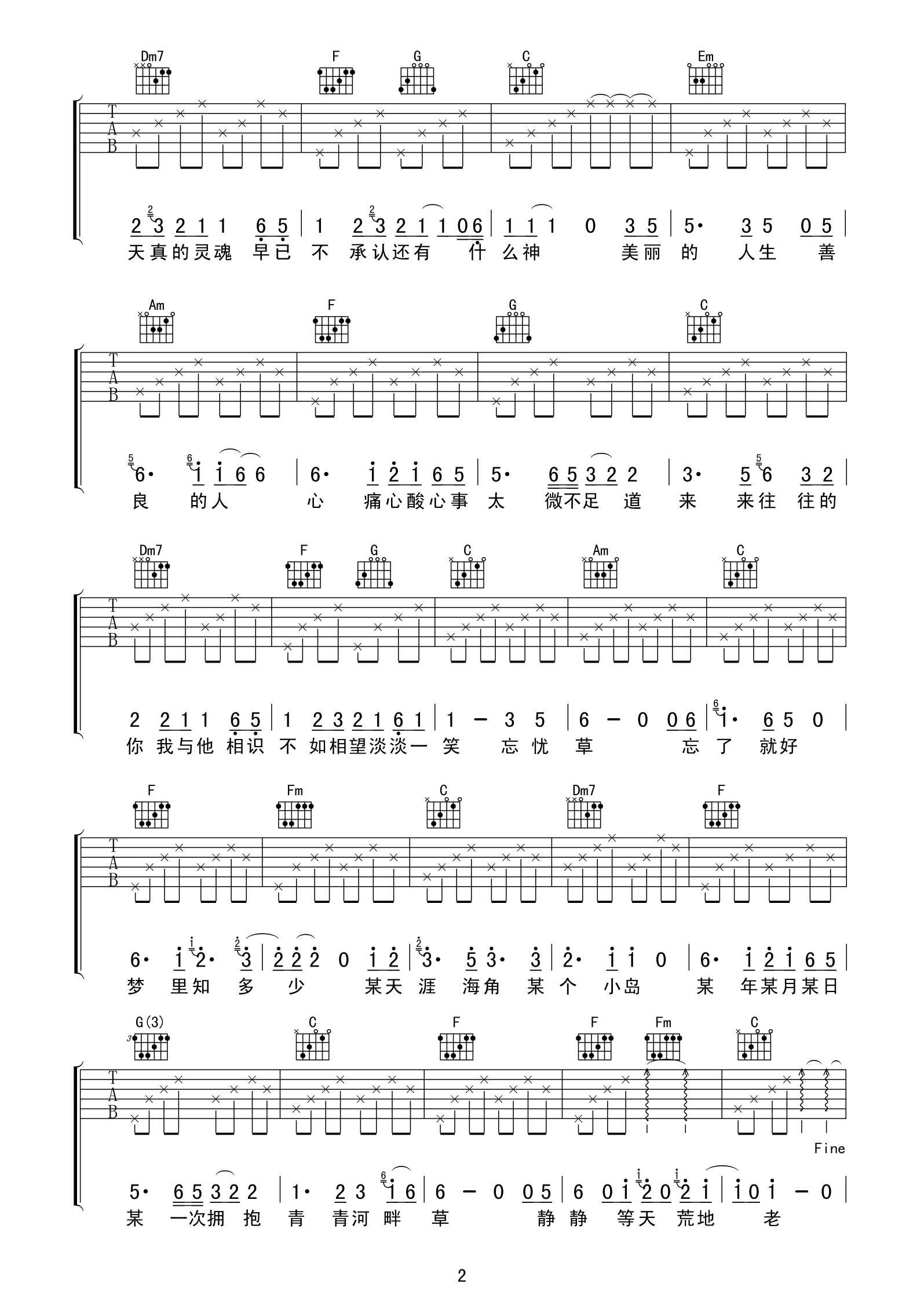 曲谱介绍: 周华健《忘忧草喀什怒放》吉他弹唱谱,共有2张高清图谱,免翻页排版设计。
