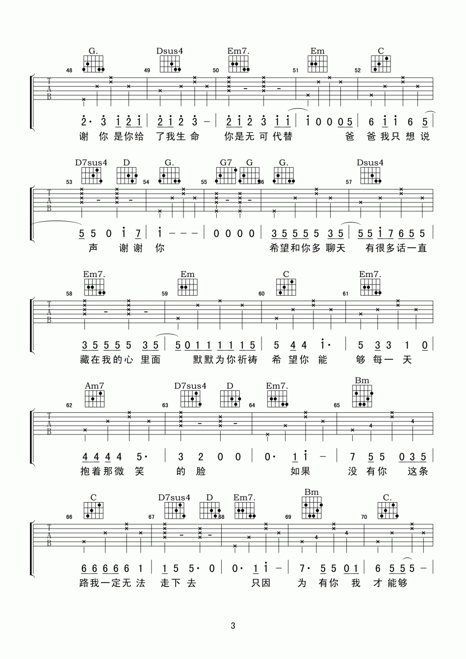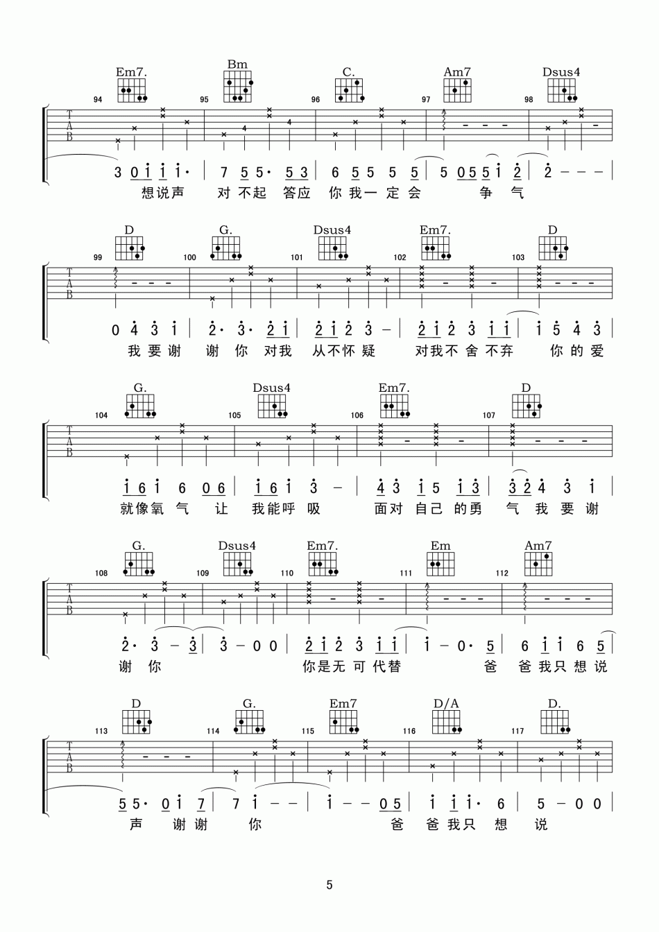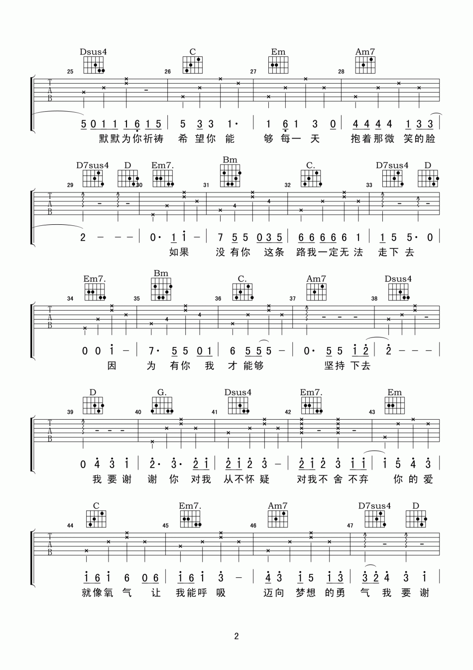 曲谱介绍: 姚俊羽《谢谢你》吉他弹唱谱,共有6张高清图谱。