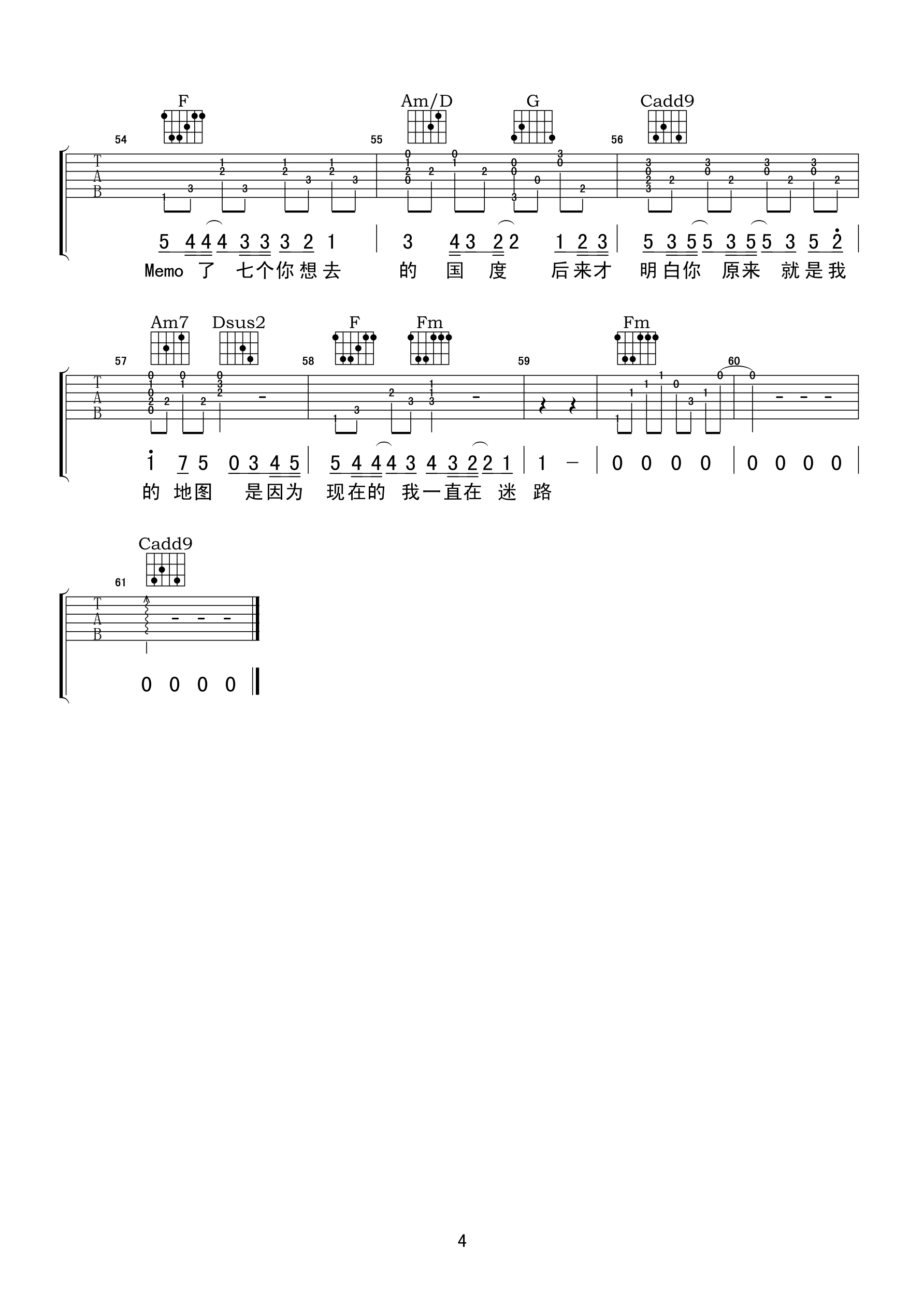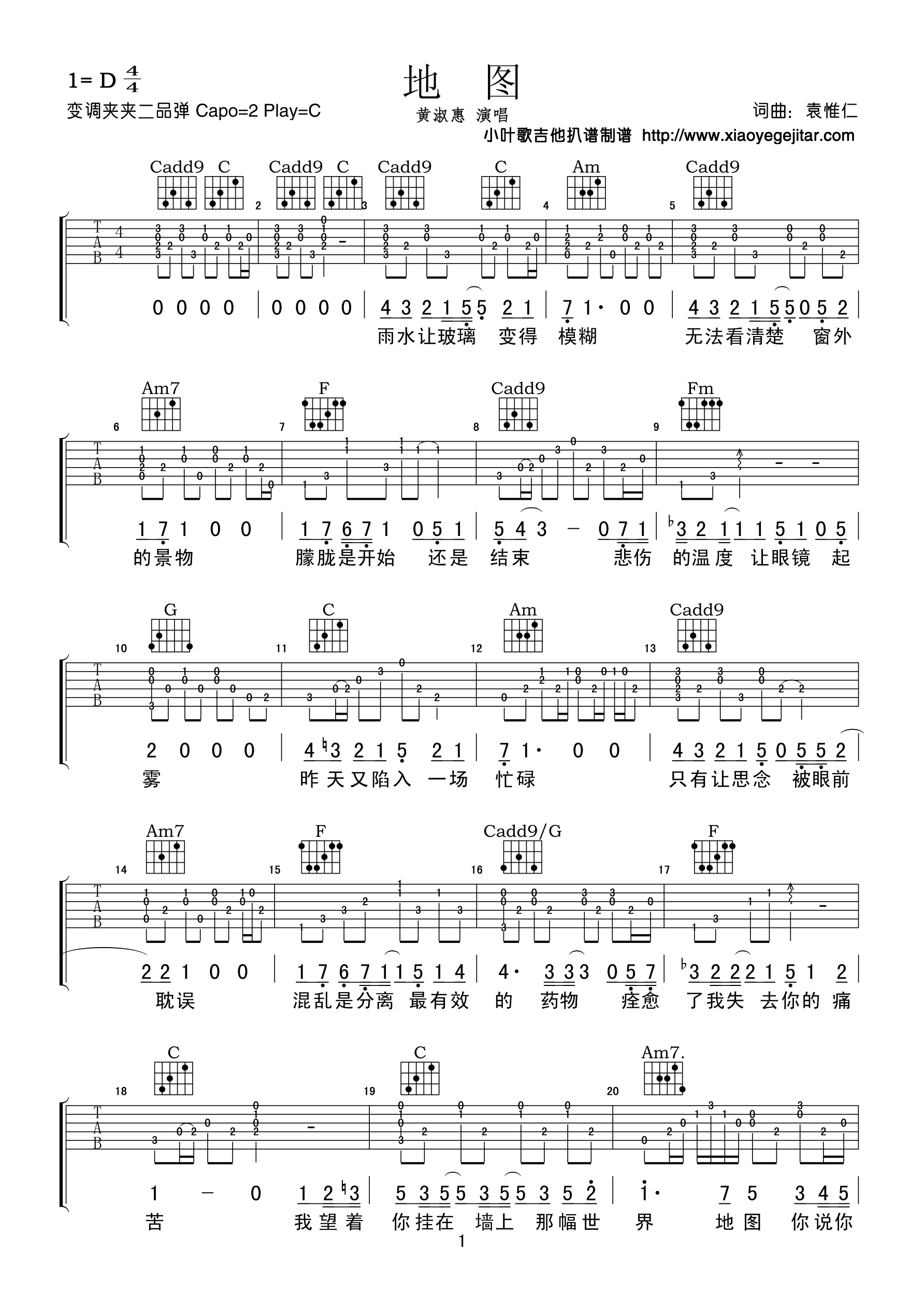 曲谱介绍: 黄淑惠《地图》吉他弹唱谱,共有4张高清图谱。