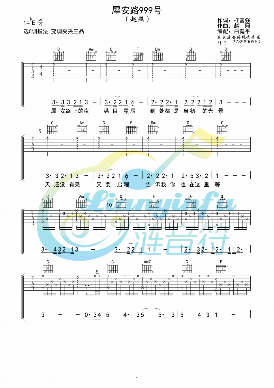 曲谱介绍: 赵照《犀安路999号》吉他弹唱谱,共有4张高清图谱。