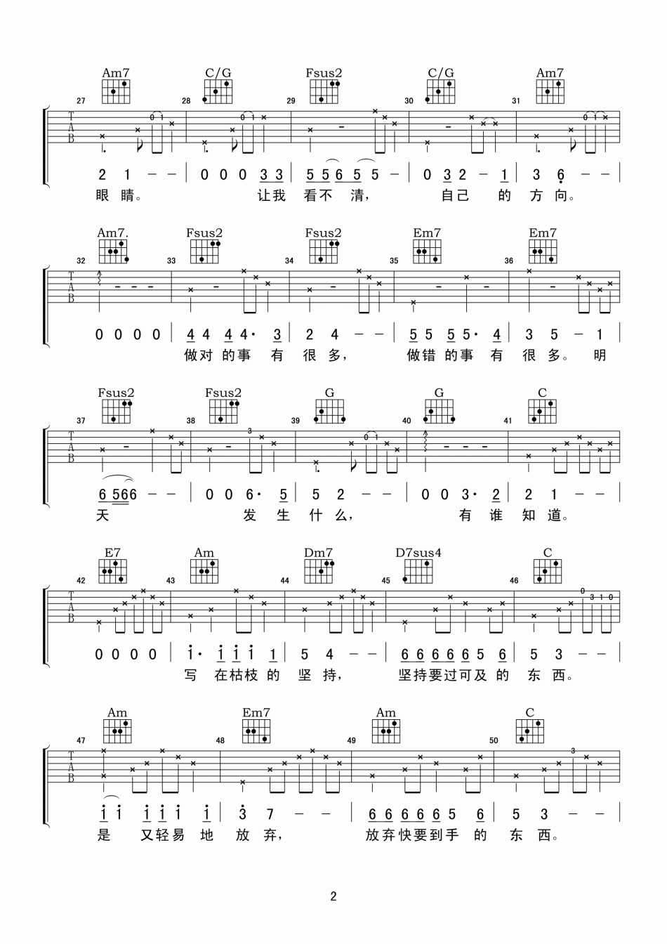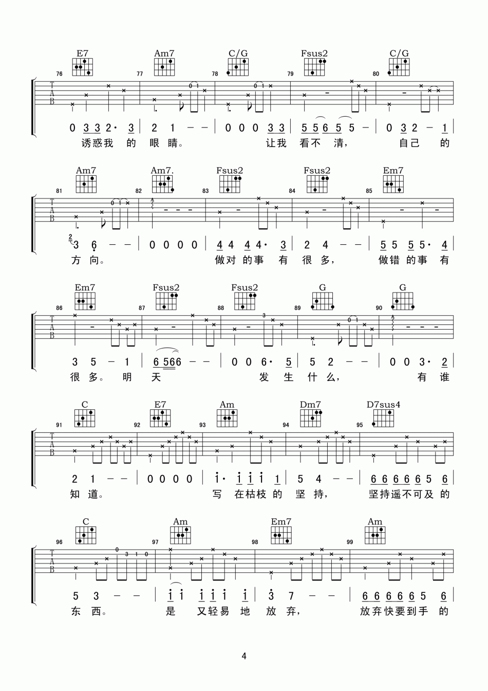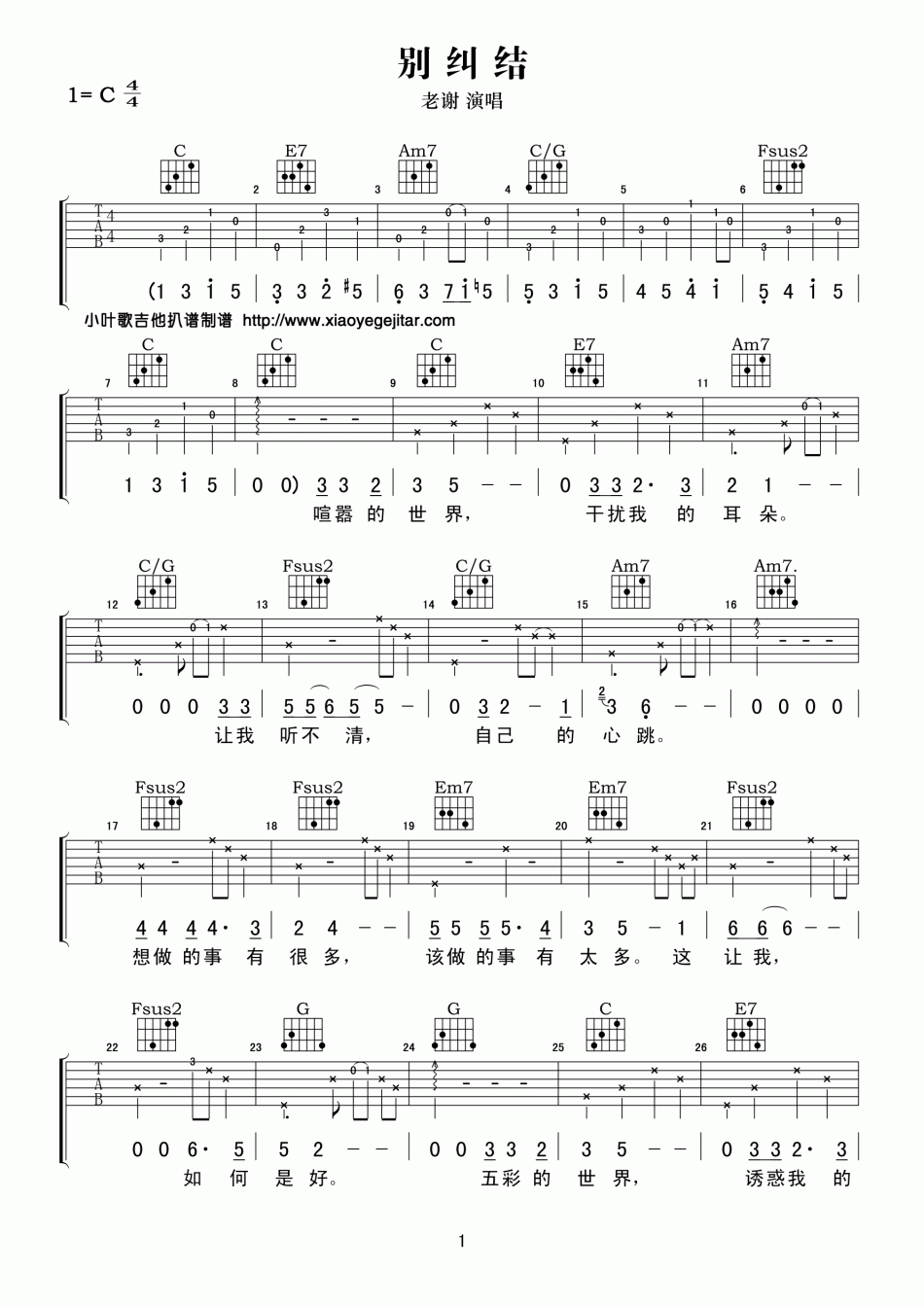 曲谱介绍: 老谢《别纠结》吉他弹唱谱,共有6张高清图谱。