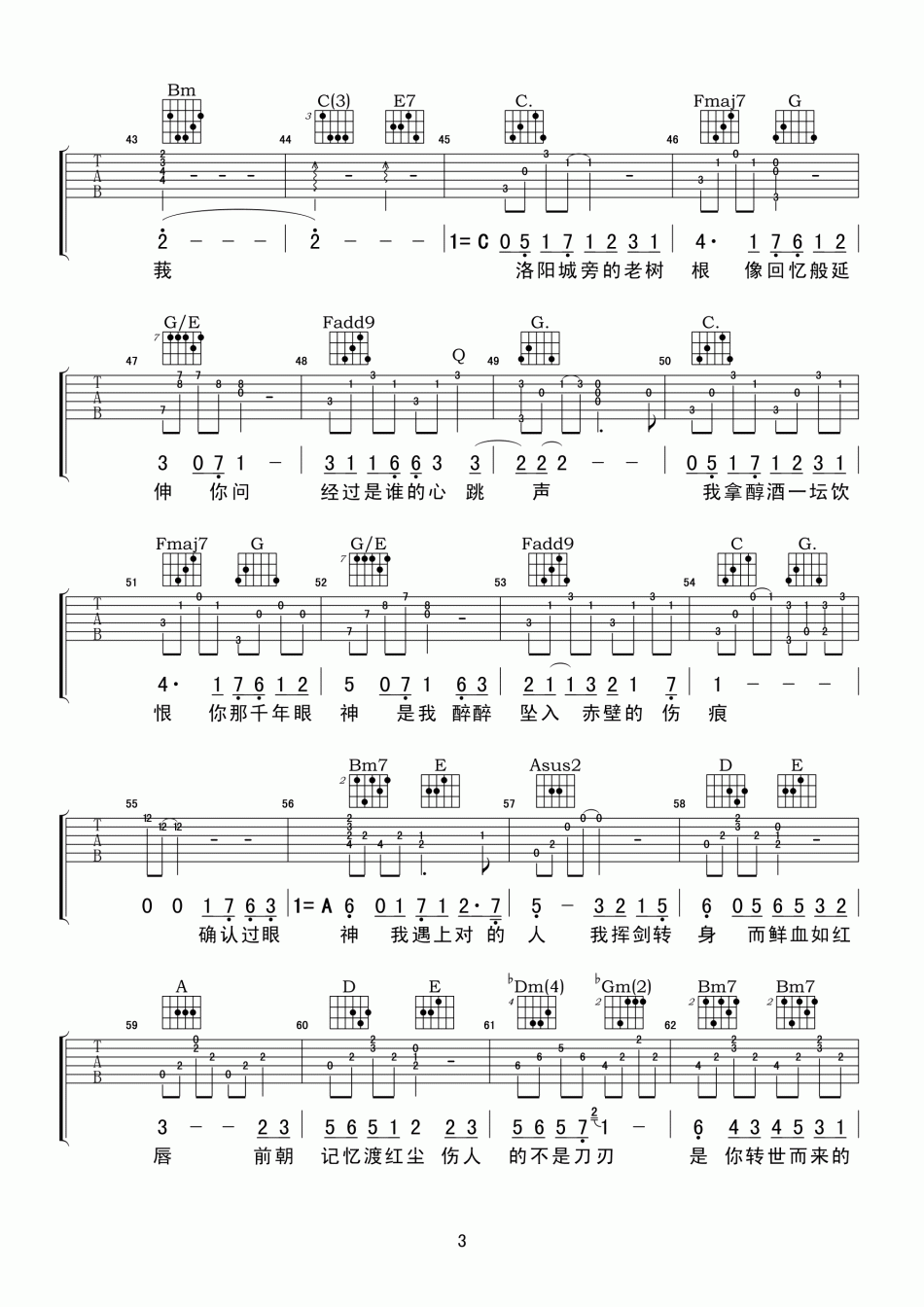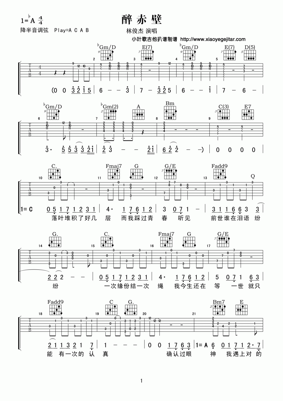 曲谱介绍: 林俊杰《醉赤壁》吉他弹唱谱,共有5张高清图谱。