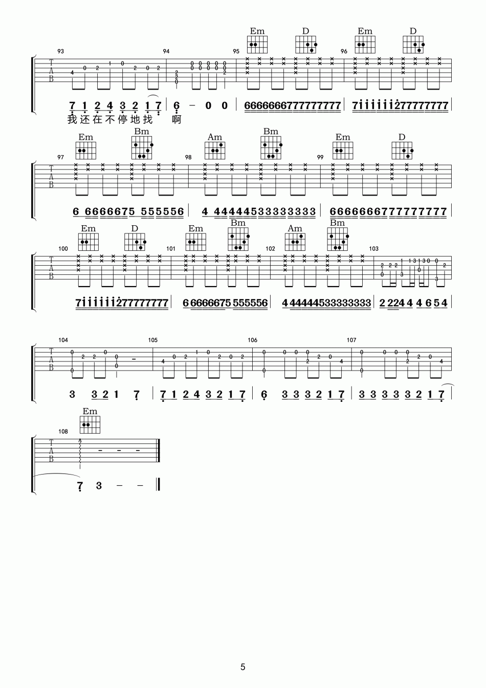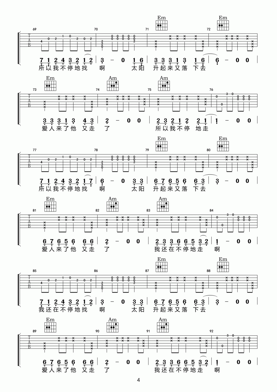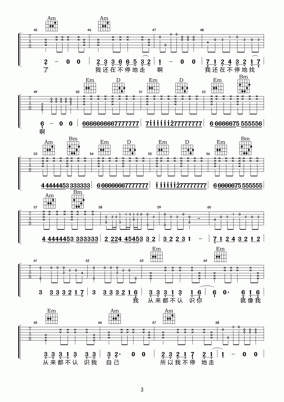 曲谱介绍: 张智《流浪者》吉他弹唱谱,共有5张高清图谱。