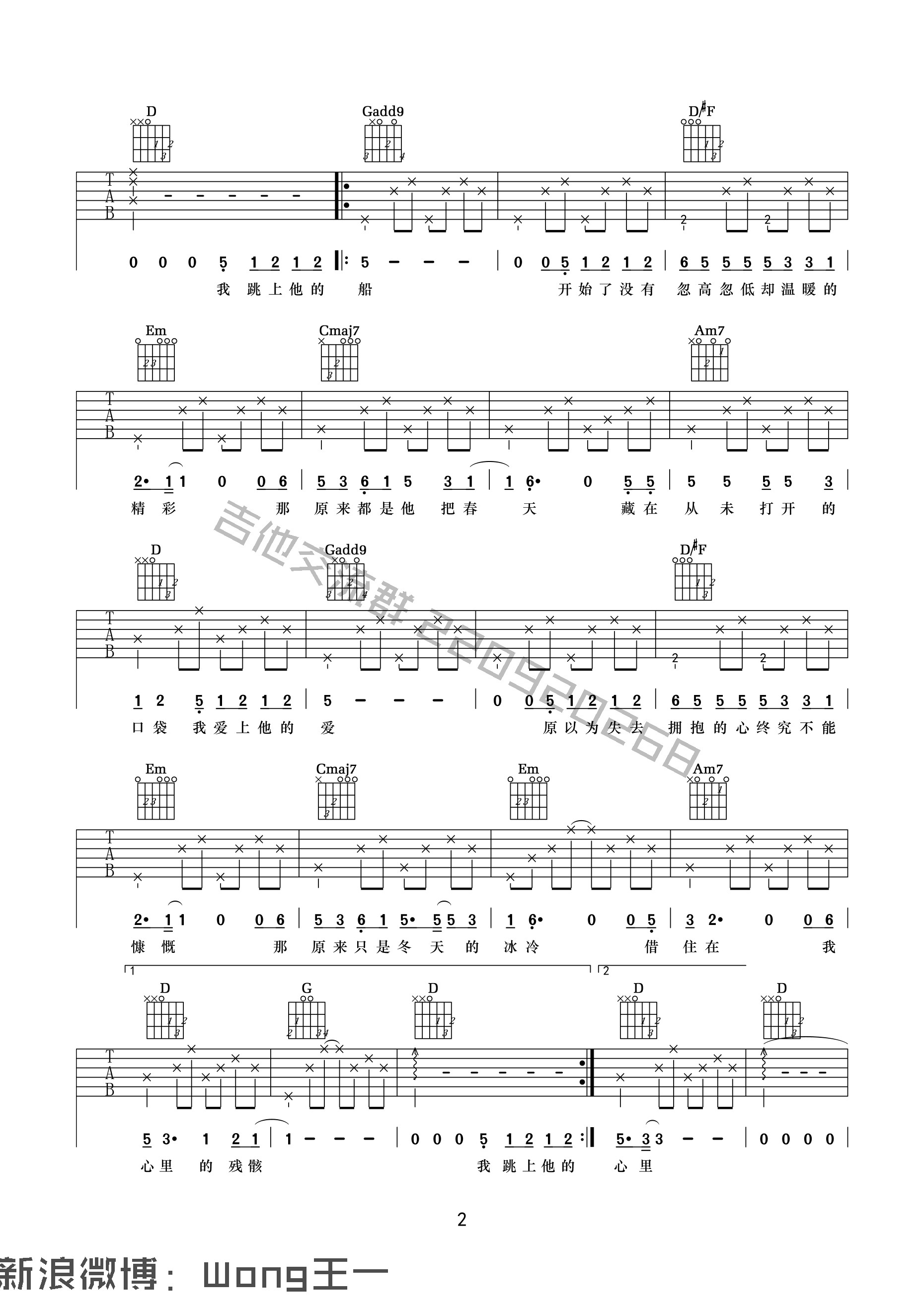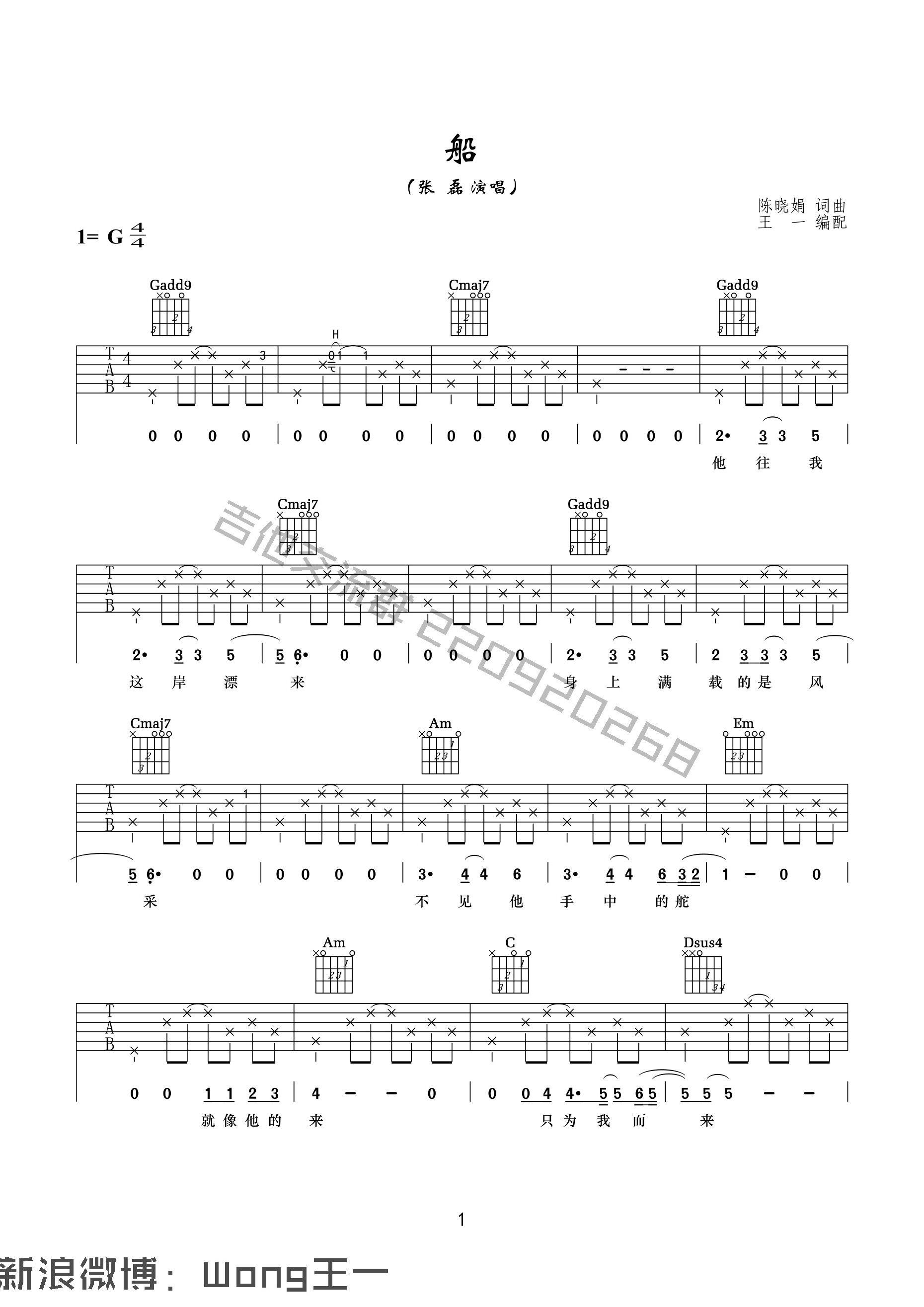 曲谱介绍: 张磊《船》吉他弹唱谱,共有3张高清图谱。