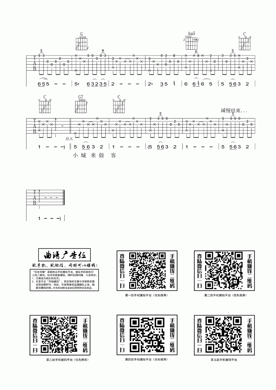 当前位置:琴谱网>吉他弹唱>小城故事