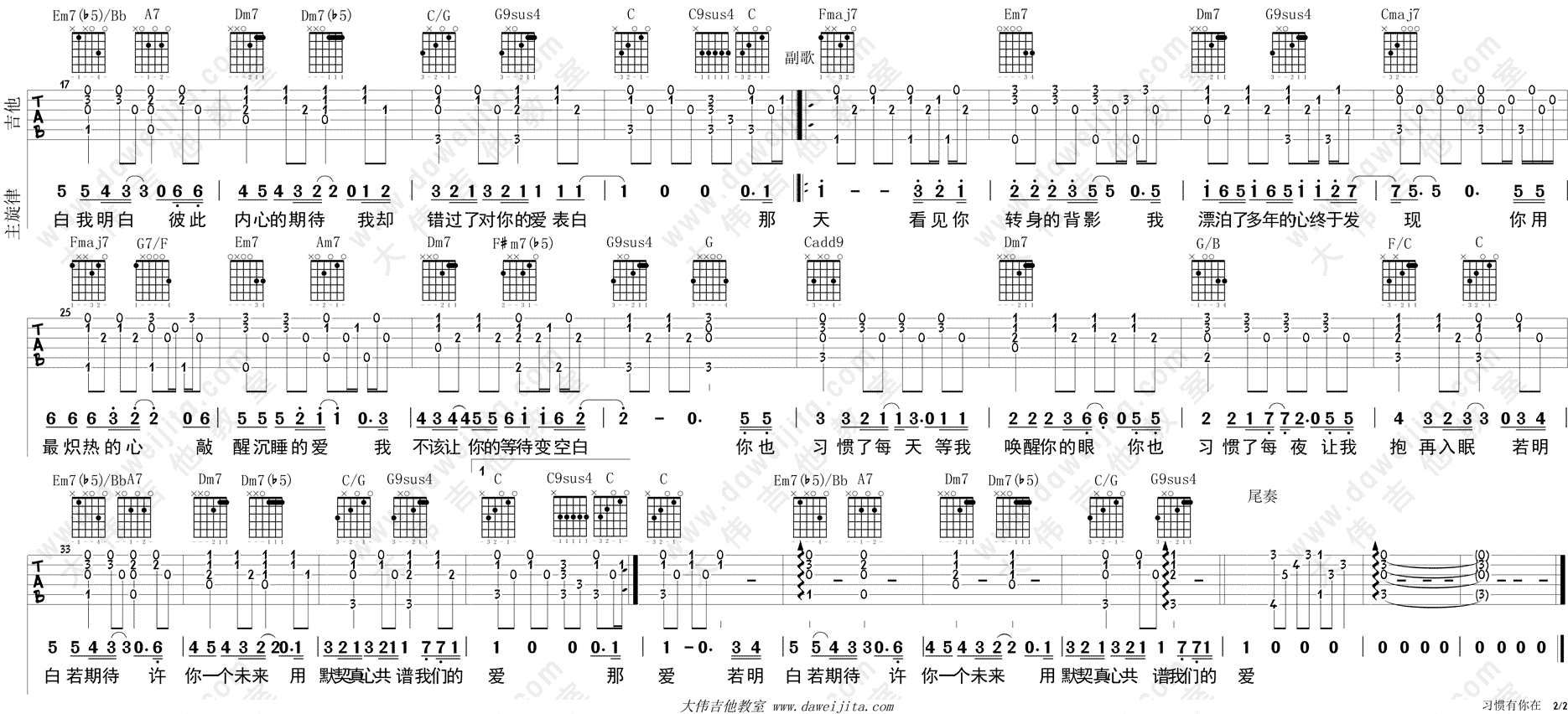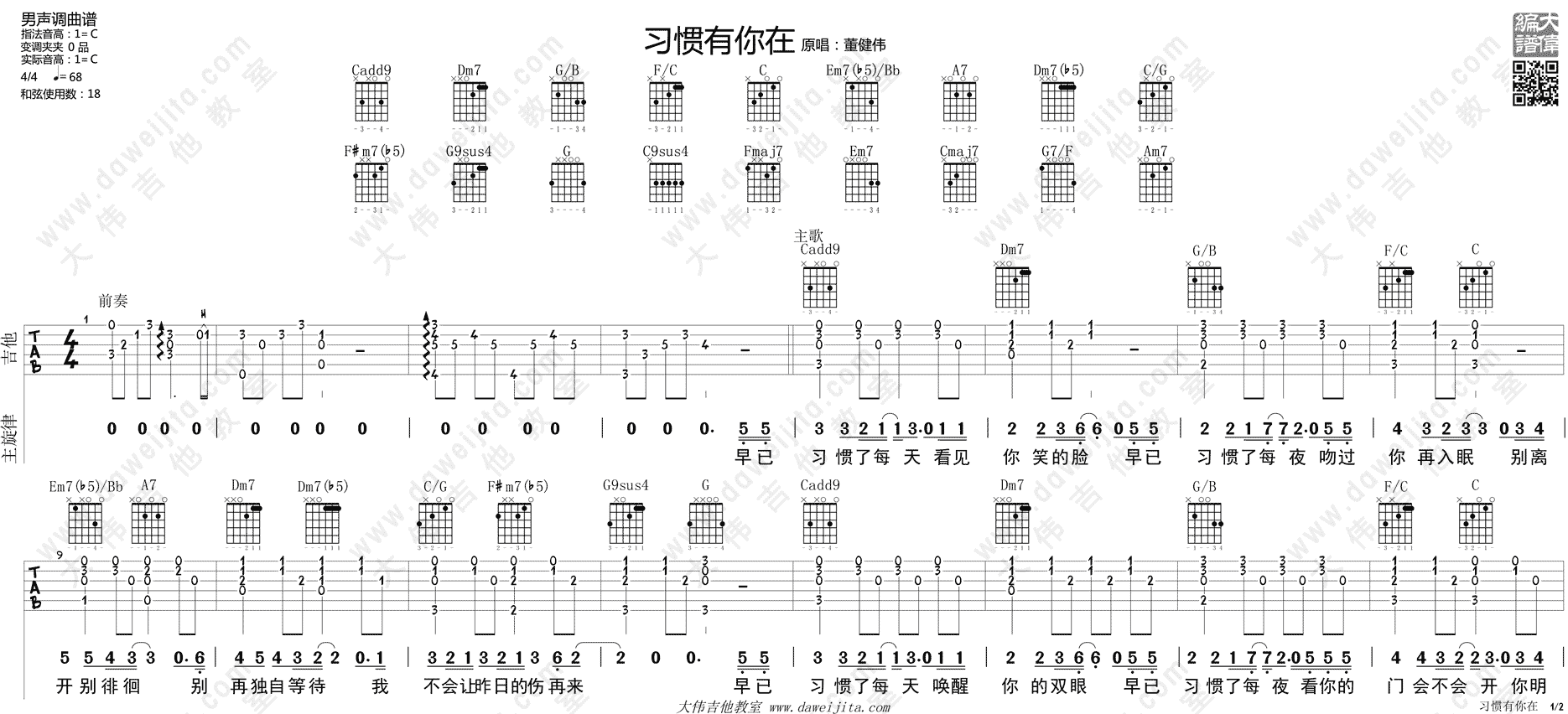 习惯有你在吉他谱 - 董建伟 - C调吉他弹唱谱