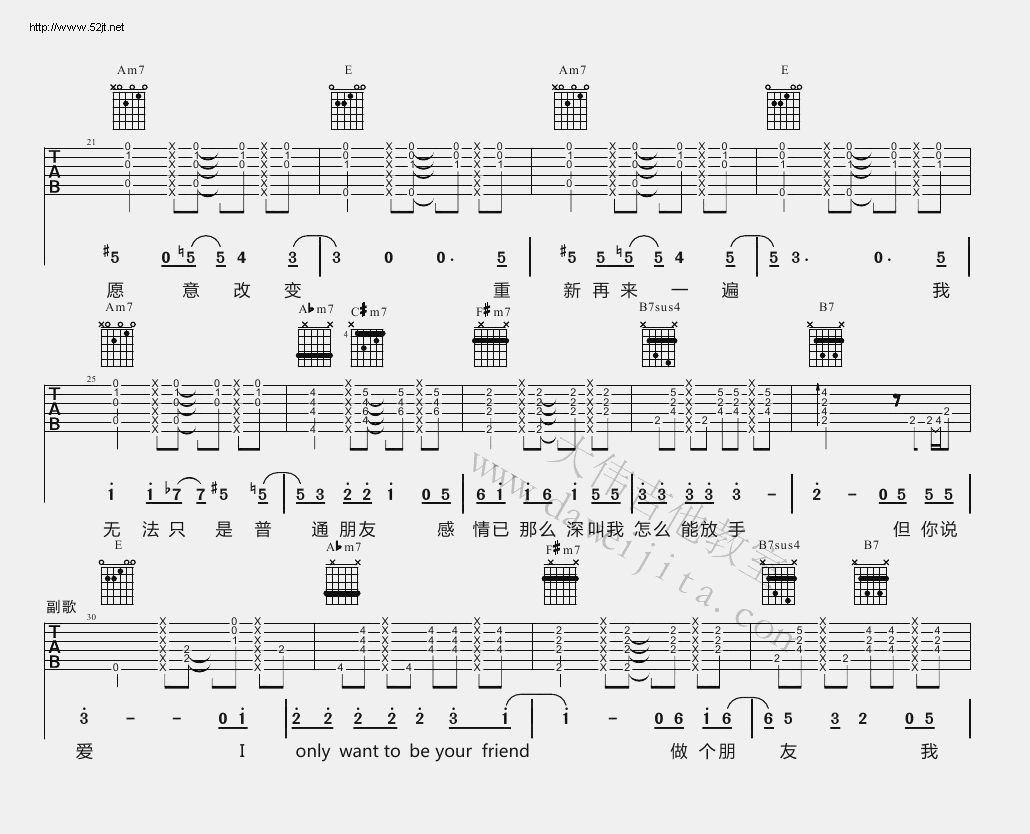 琴谱网为您精心推荐 普通朋友 高清图谱