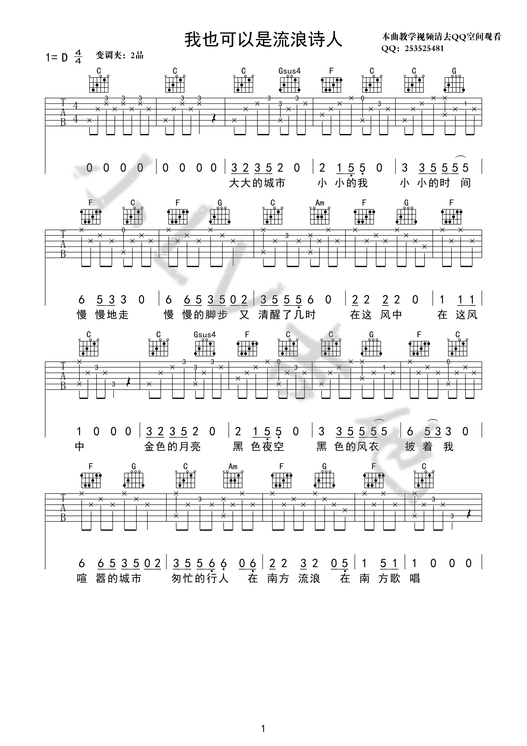 当前位置:琴谱网>吉他弹唱>我也可以是流浪诗人