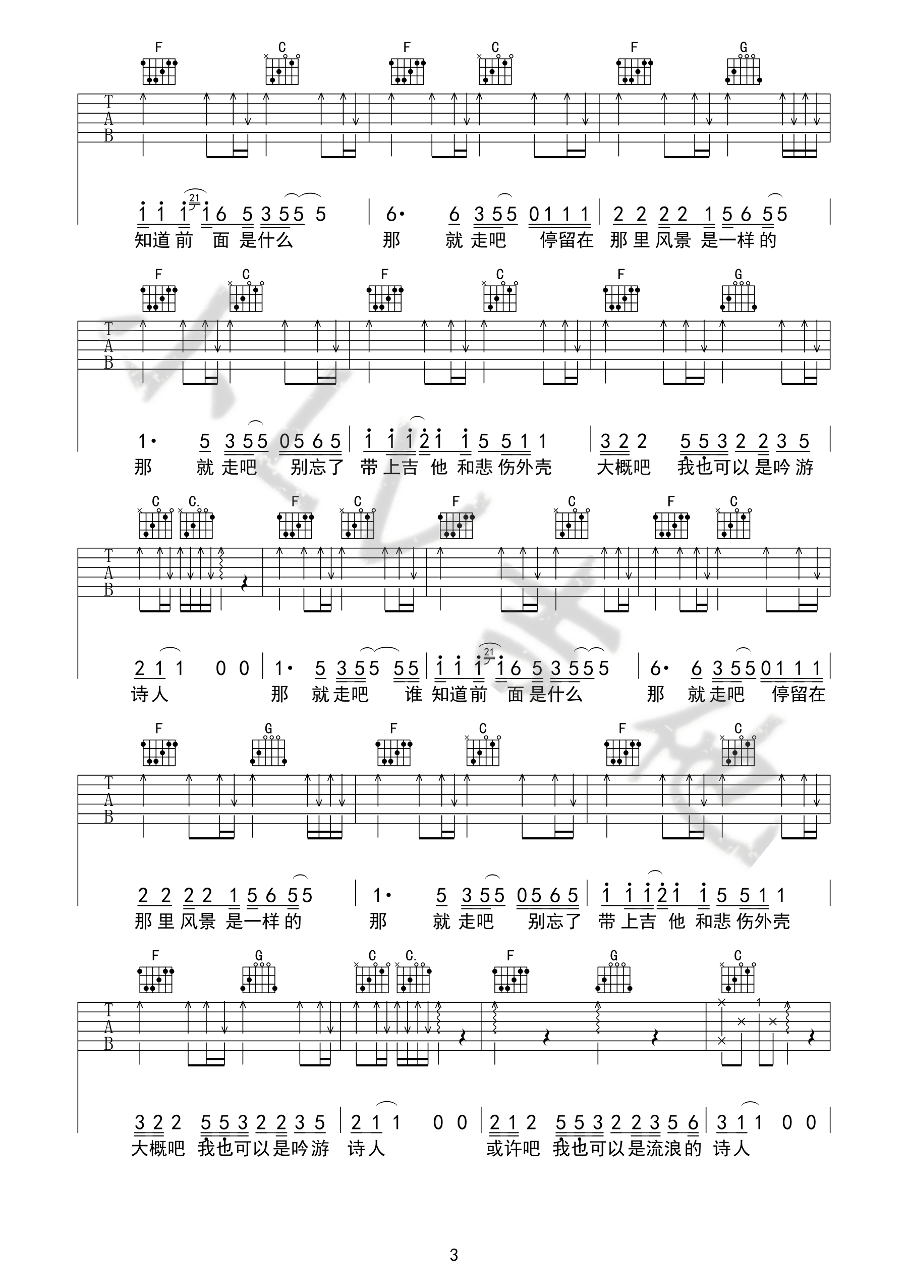 曲谱介绍: 好妹妹乐队《我也可以是流浪诗人》吉他弹唱谱,共有3张高清图谱。