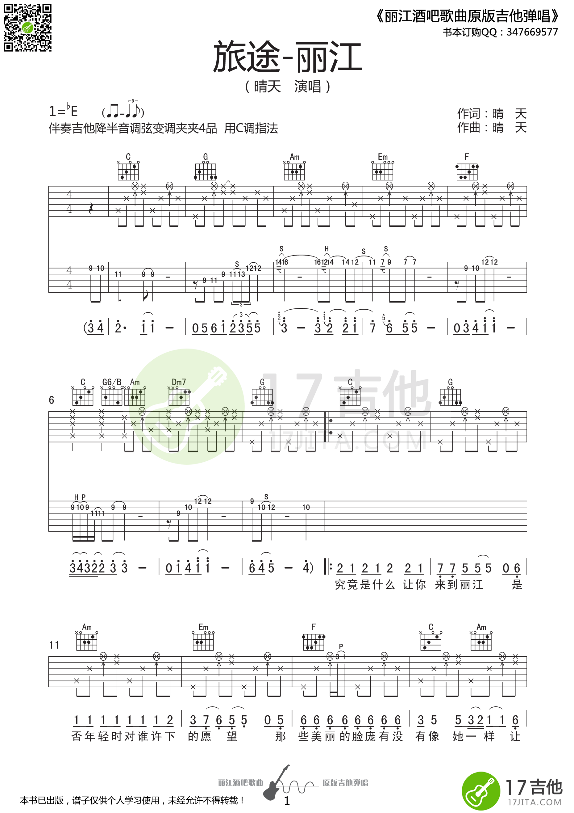 旅途丽江吉他谱 - 晴天 - 吉他弹唱谱