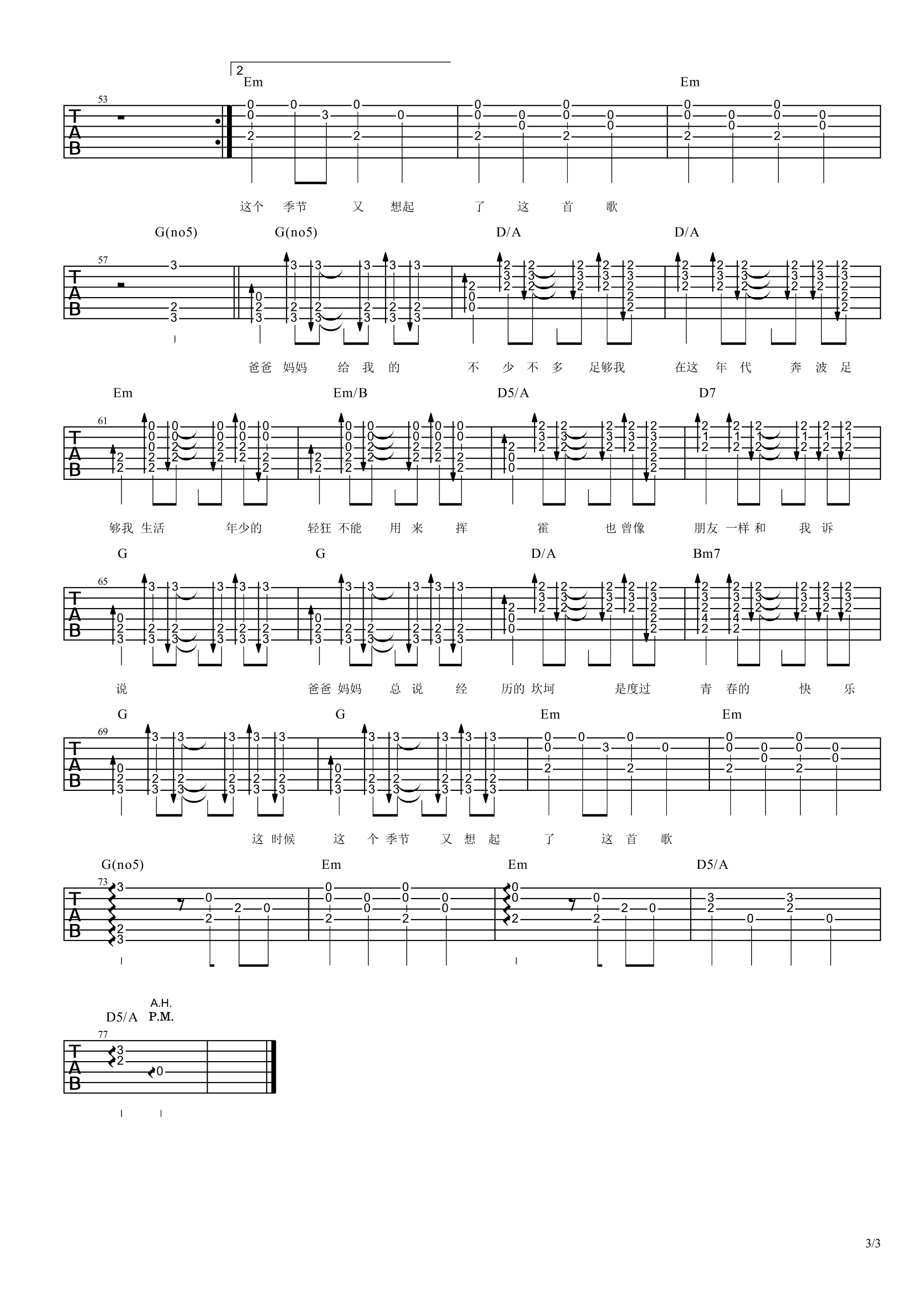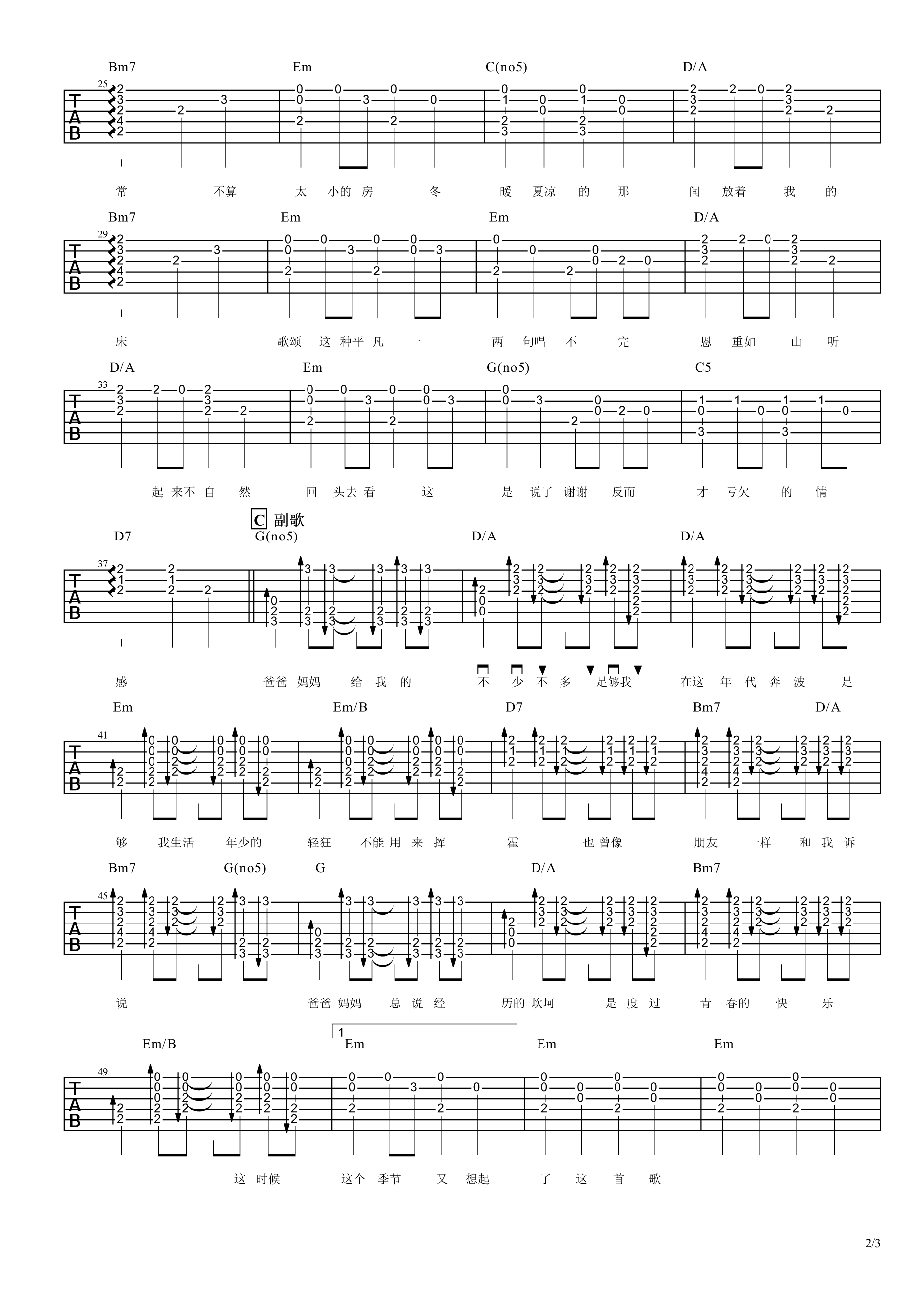 曲谱介绍: 李荣浩《爸爸妈妈》吉他弹唱谱,共有3张高清图谱。