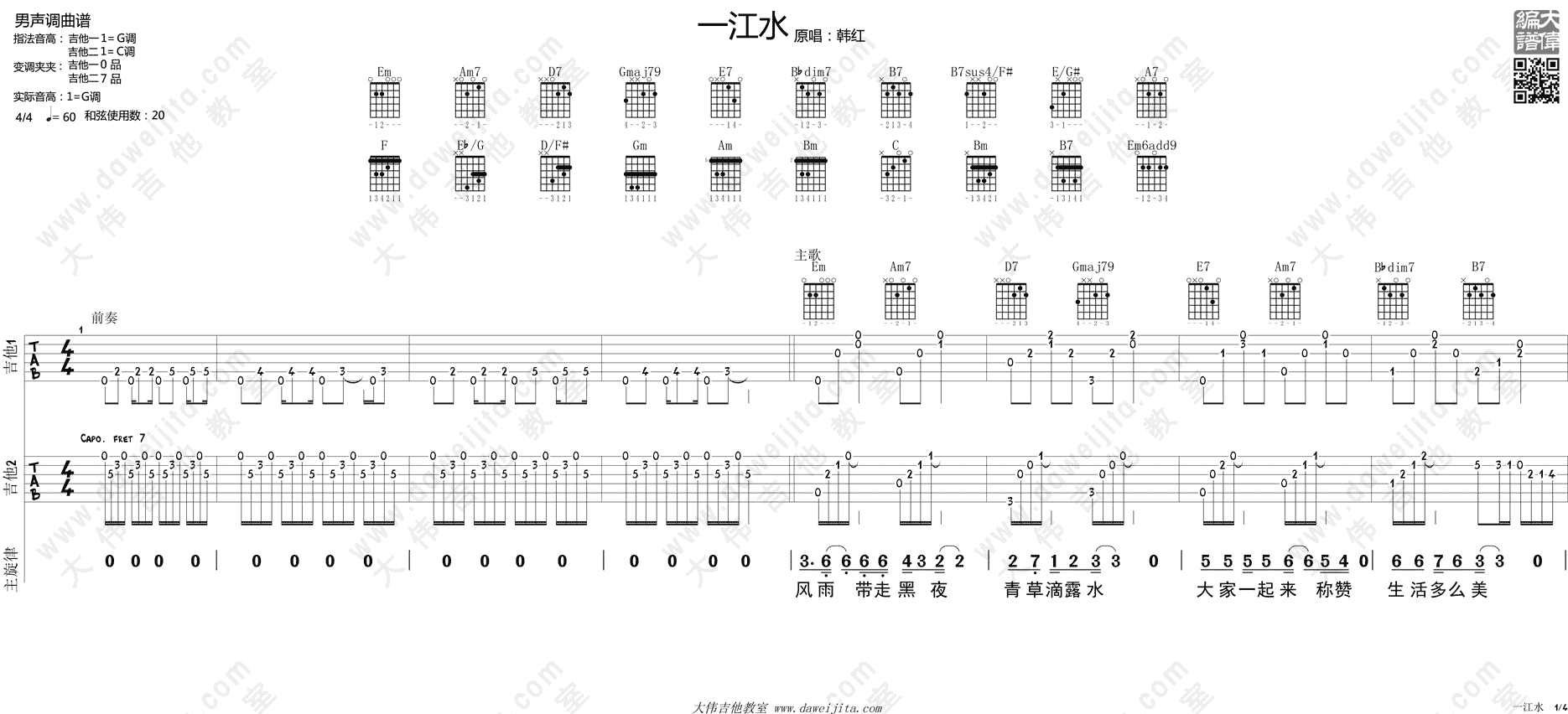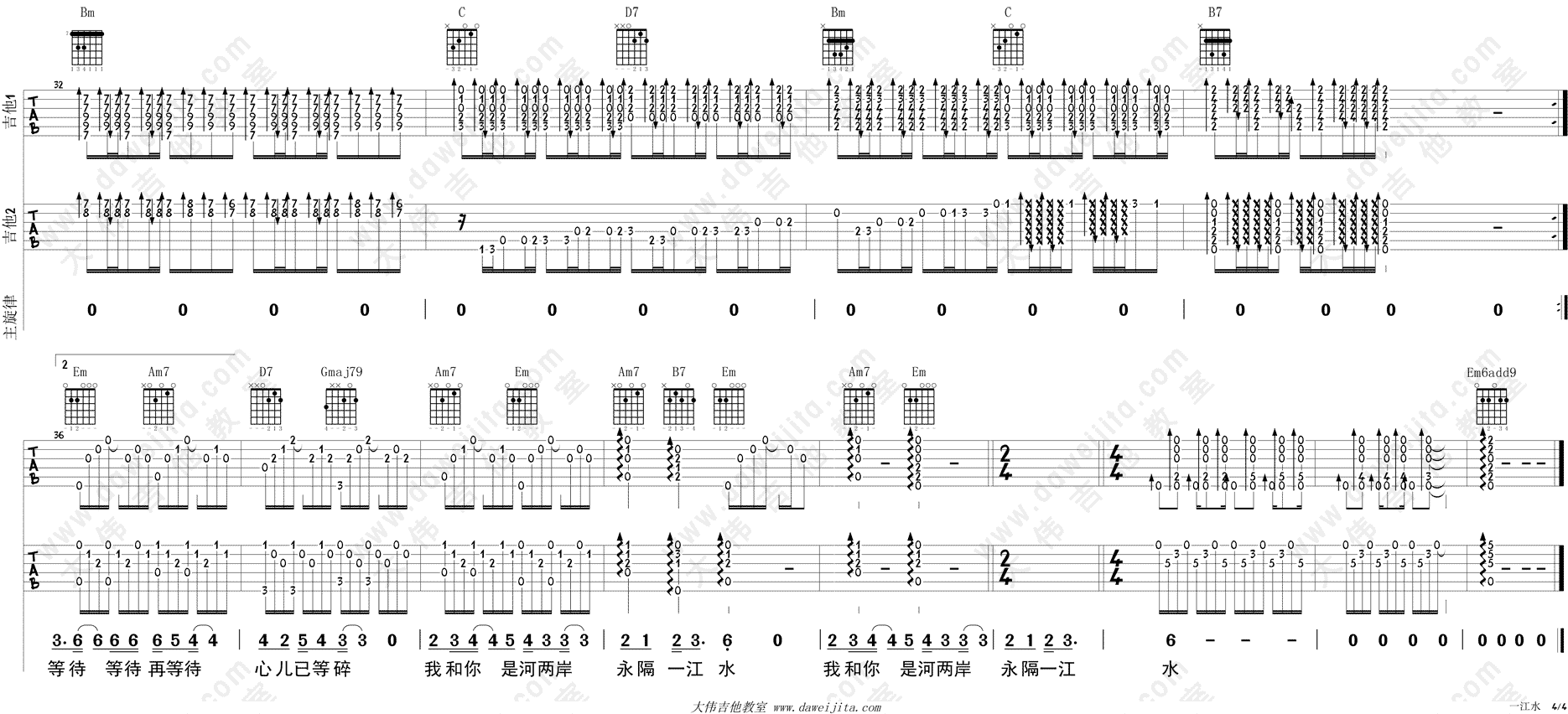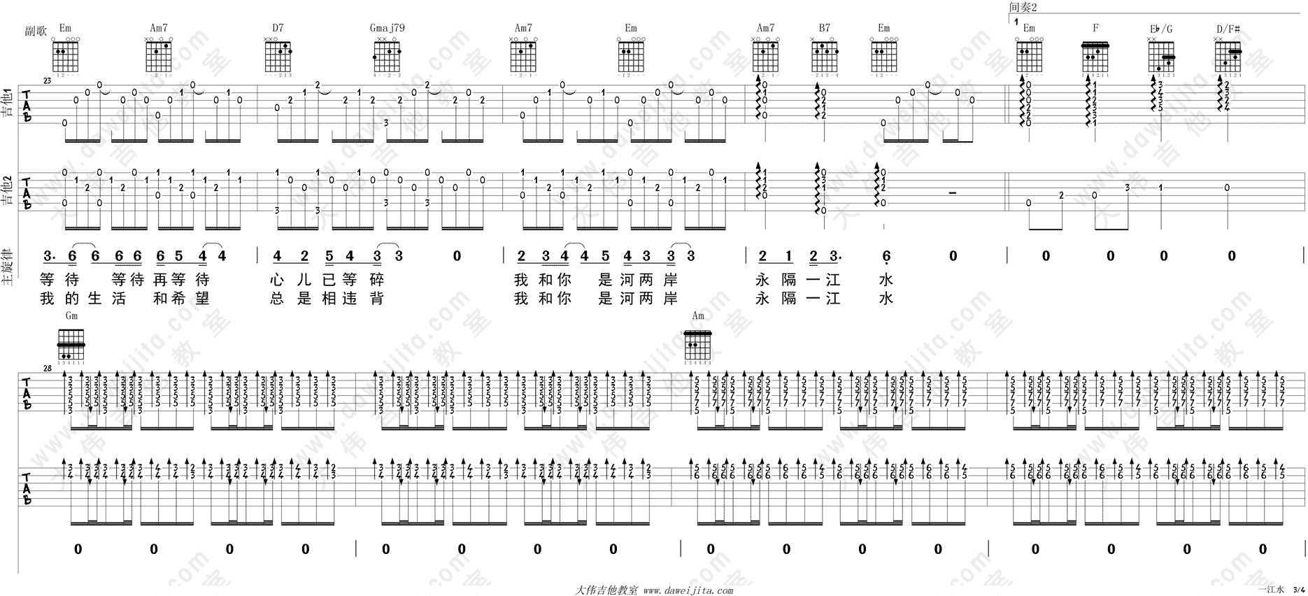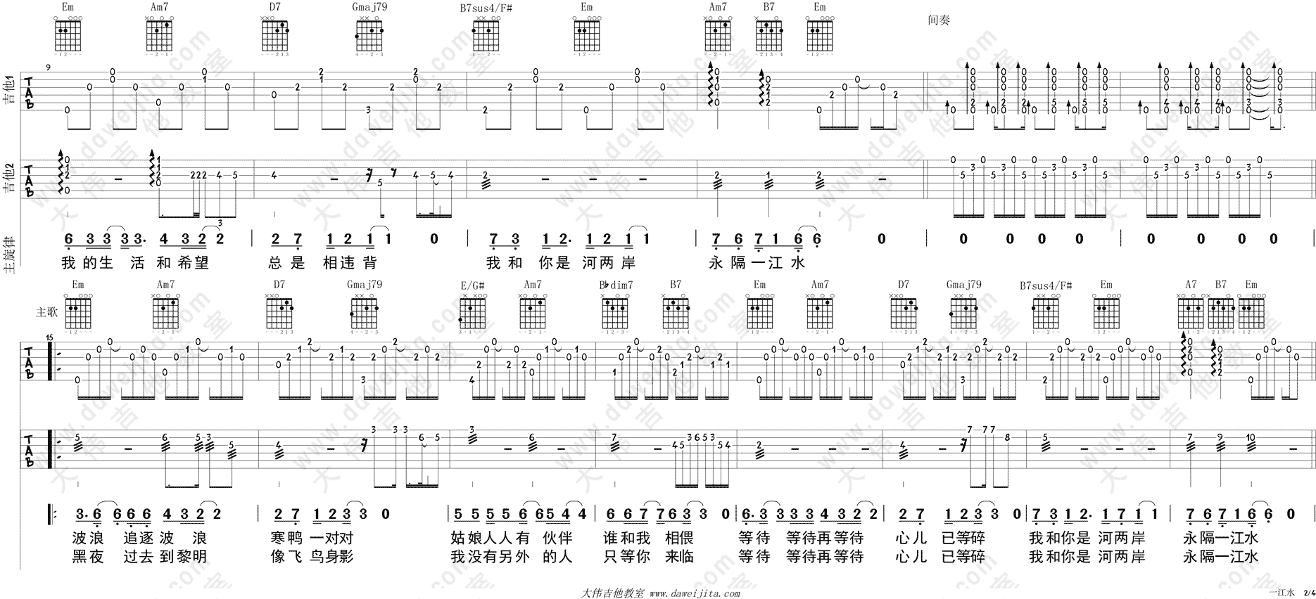 当前位置:琴谱网>吉他弹唱>一江水 双吉他版