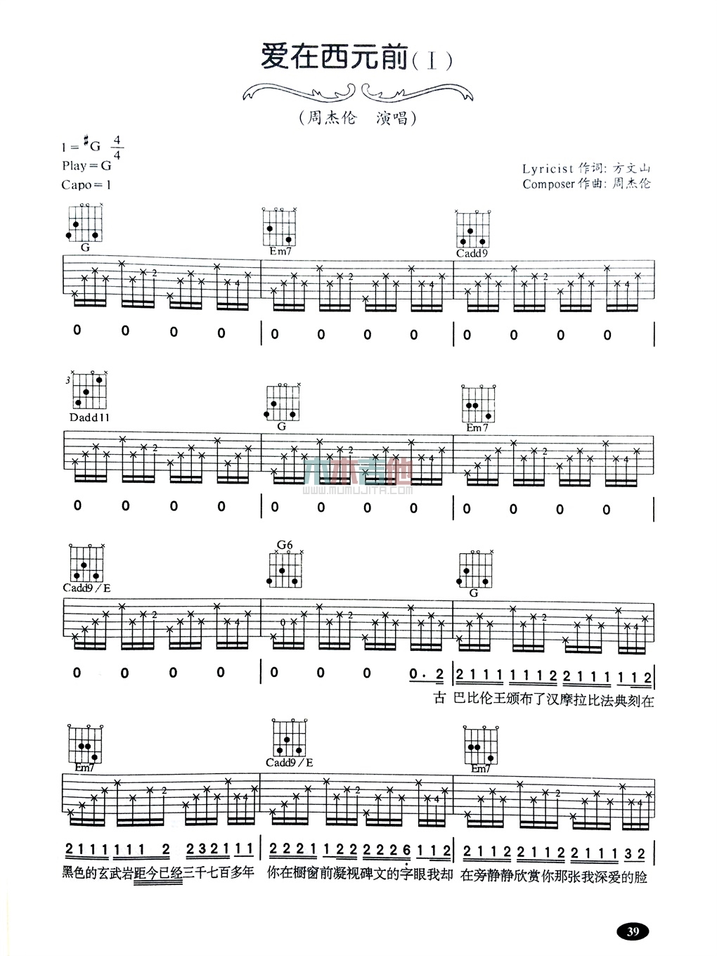 爱在西元前吉他谱 - 周杰伦 - 吉他弹唱谱