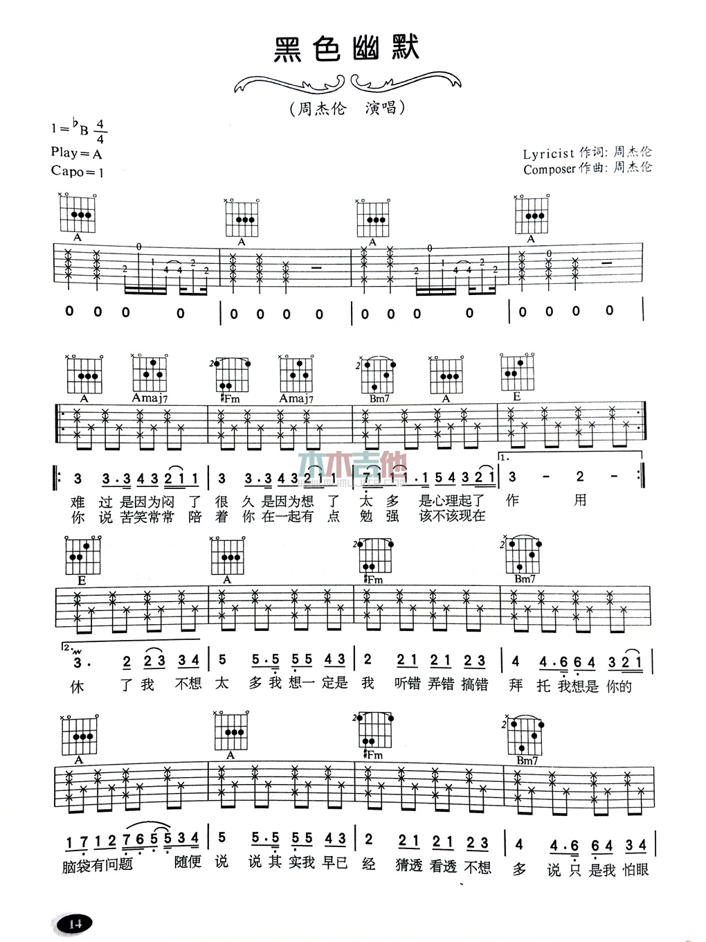 黑色幽默吉他谱 - 周杰伦 - 吉他弹唱谱