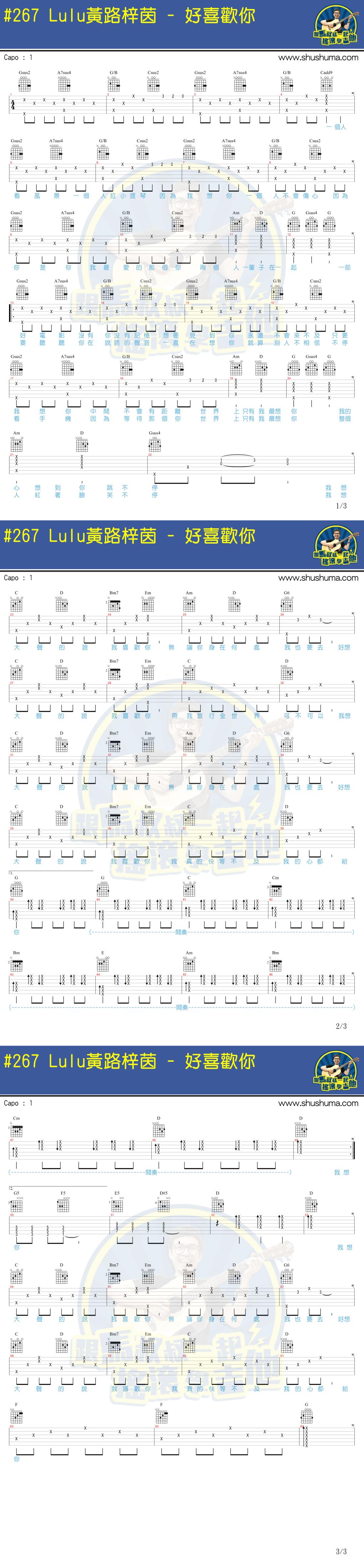 好喜欢你吉他谱 - 黄路梓茵 - 吉他弹唱谱
