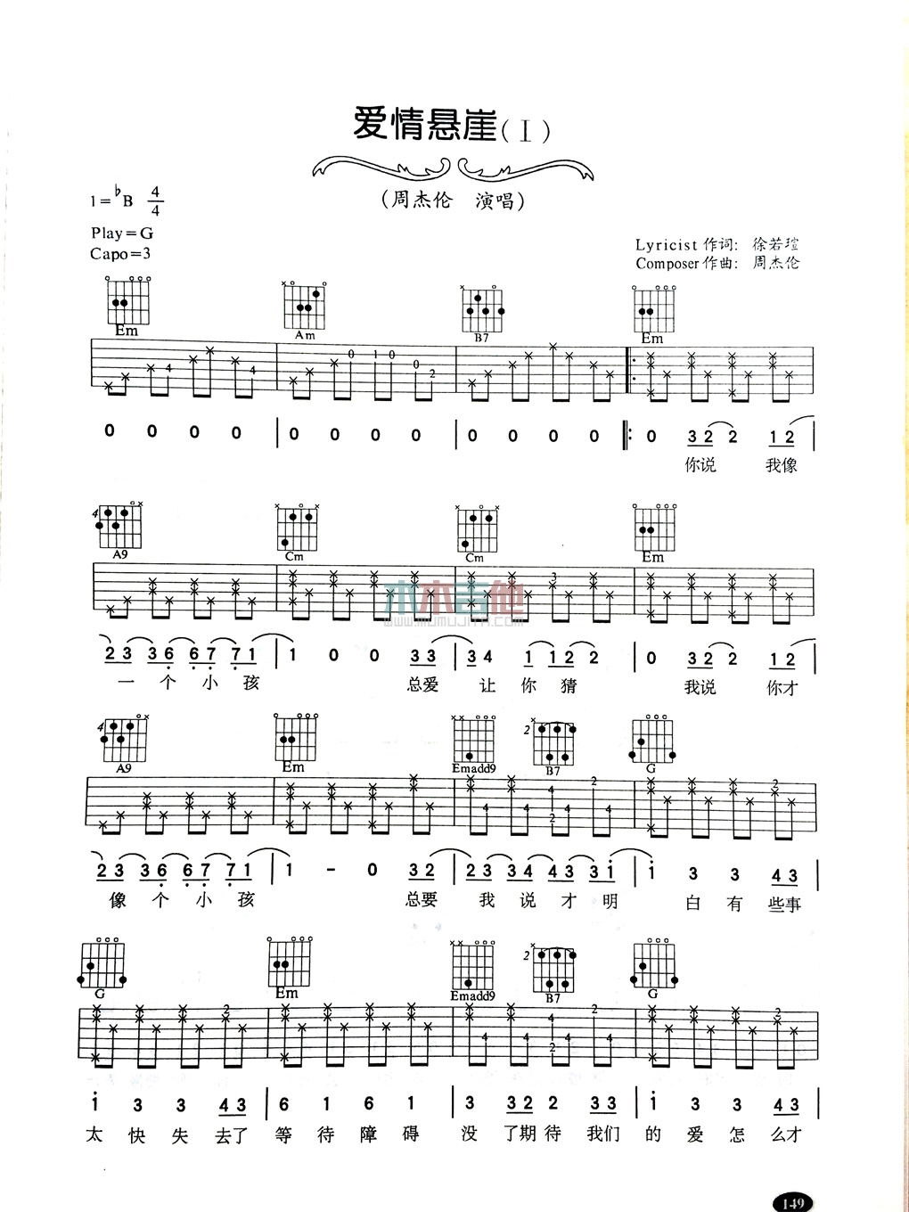 曲谱介绍: 周杰伦《爱情悬崖》吉他弹唱谱,共有3张高清图谱。
