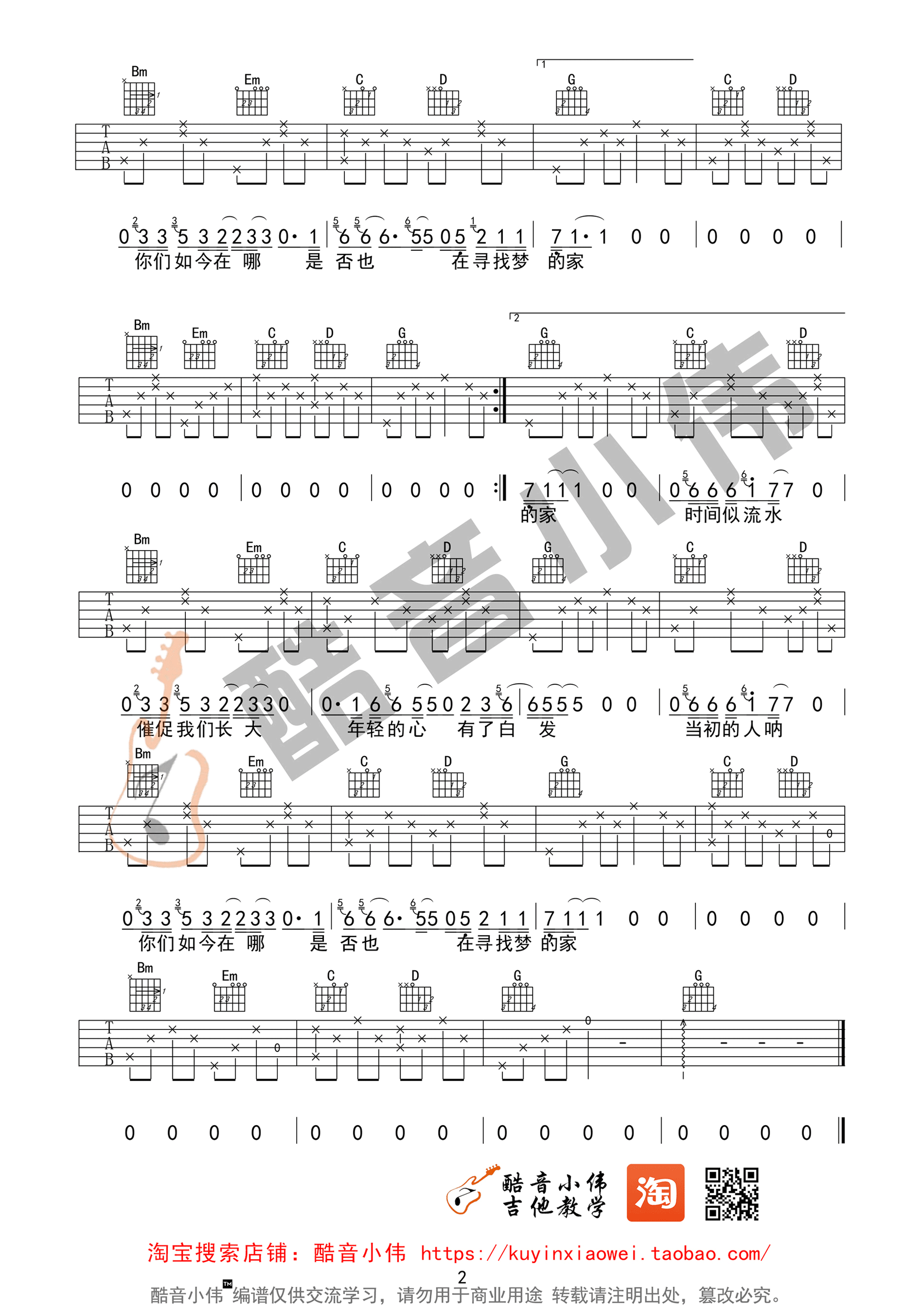 曲谱介绍: 夏小虎《逝年》吉他弹唱谱,共有2张高清图谱,免翻页排版设计。