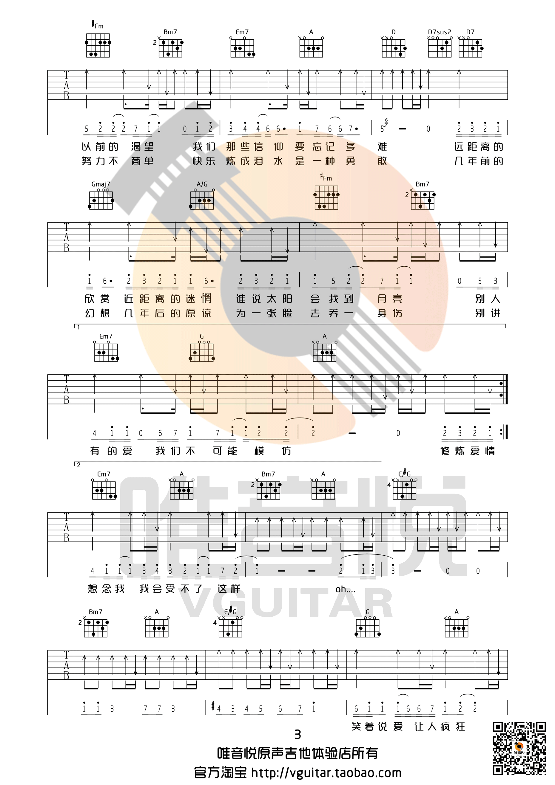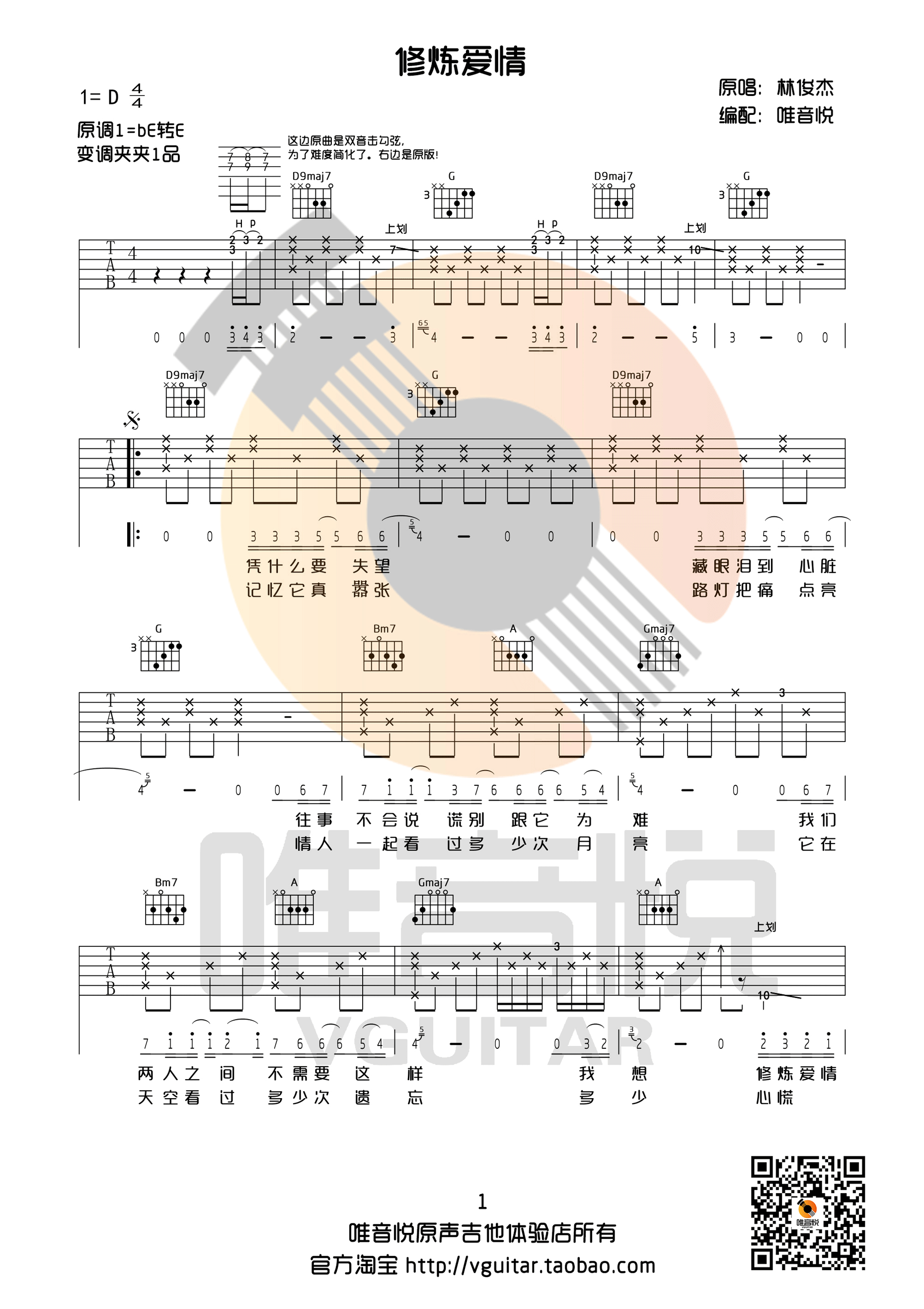 曲谱介绍: 林俊杰《修炼爱情》吉他弹唱谱,共有4张高清图谱。