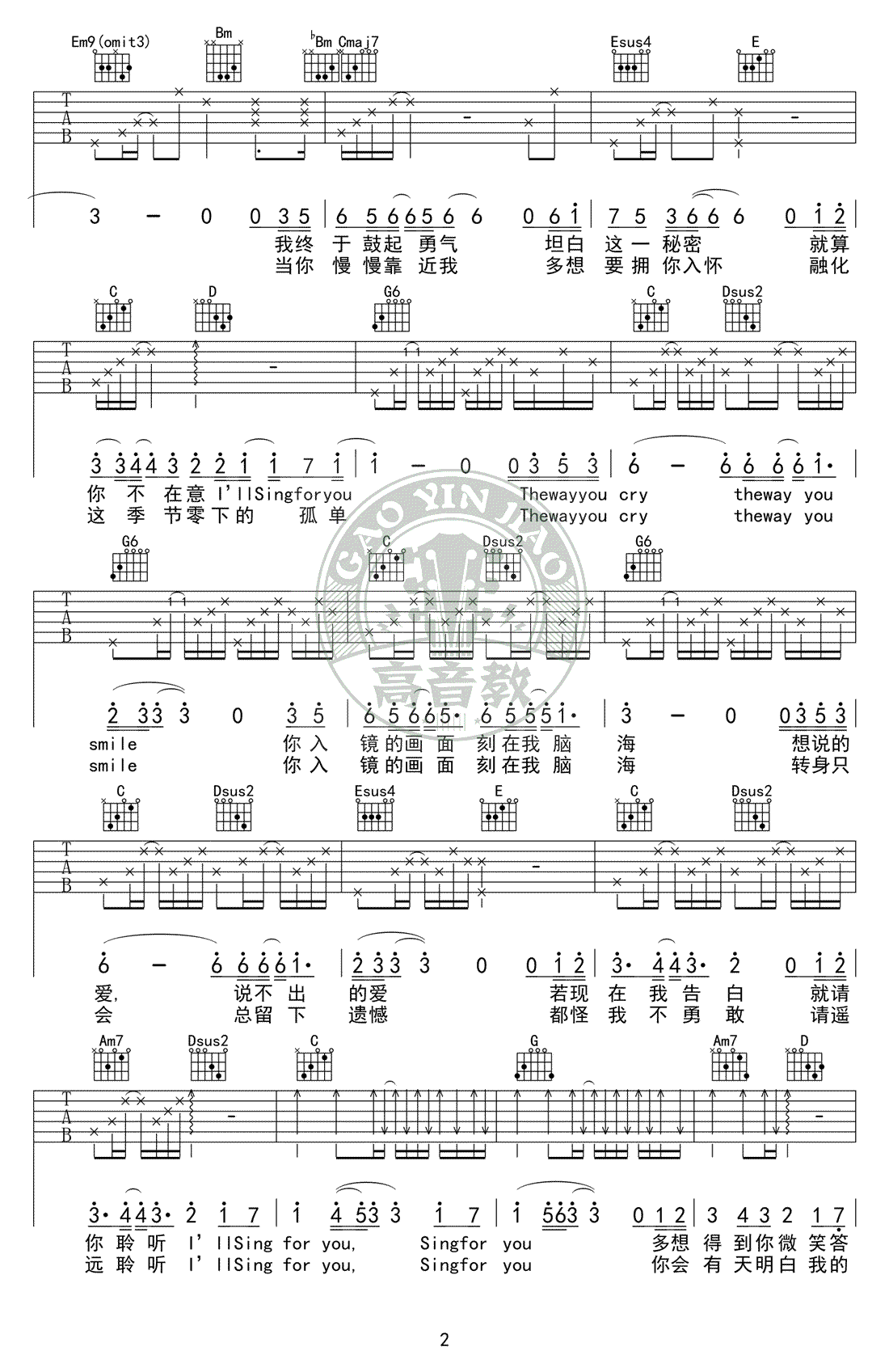 Sing For You吉他谱 - Sing - G调吉他弹唱谱