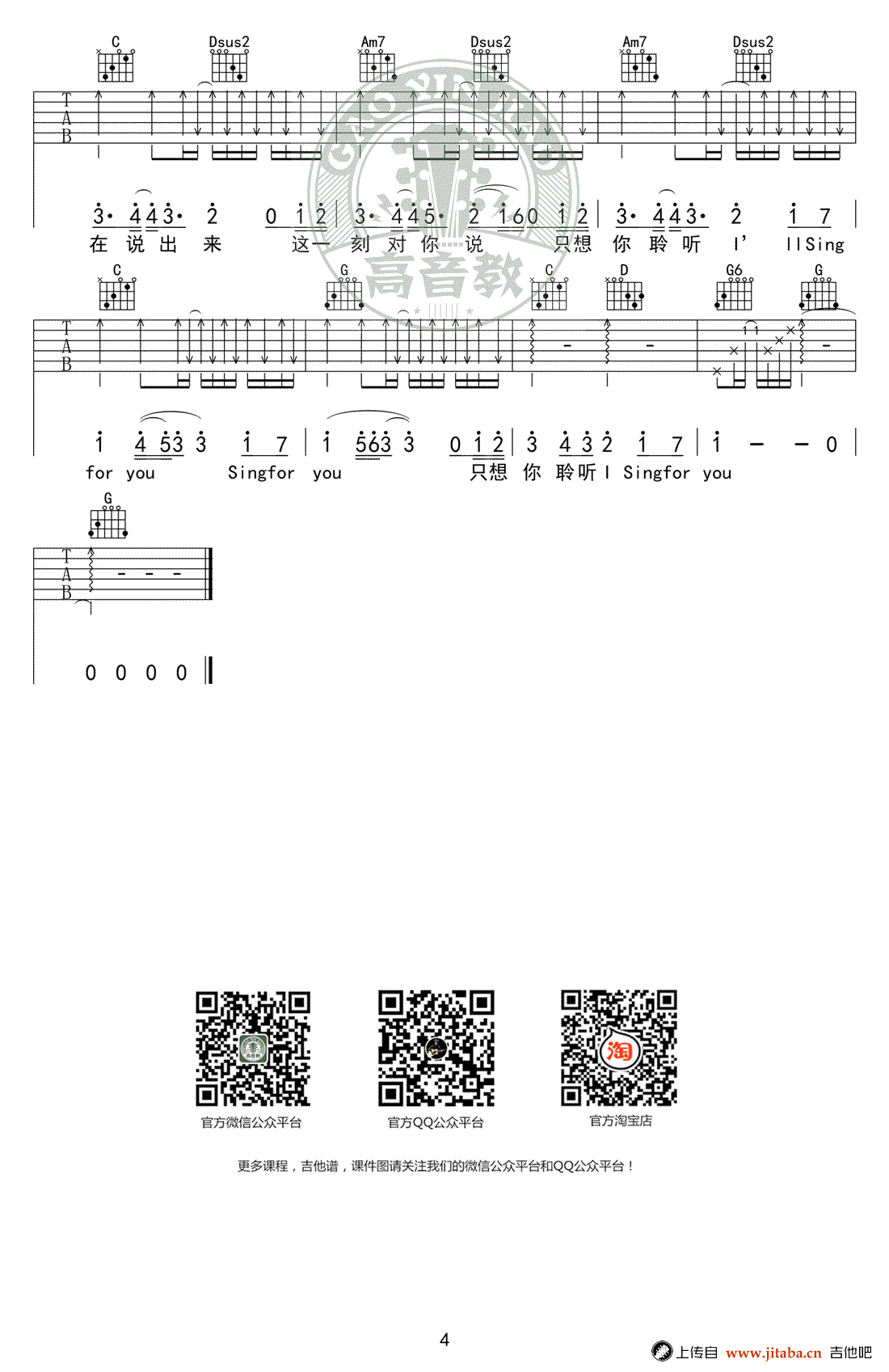当前位置:琴谱网>吉他弹唱>Sing For You