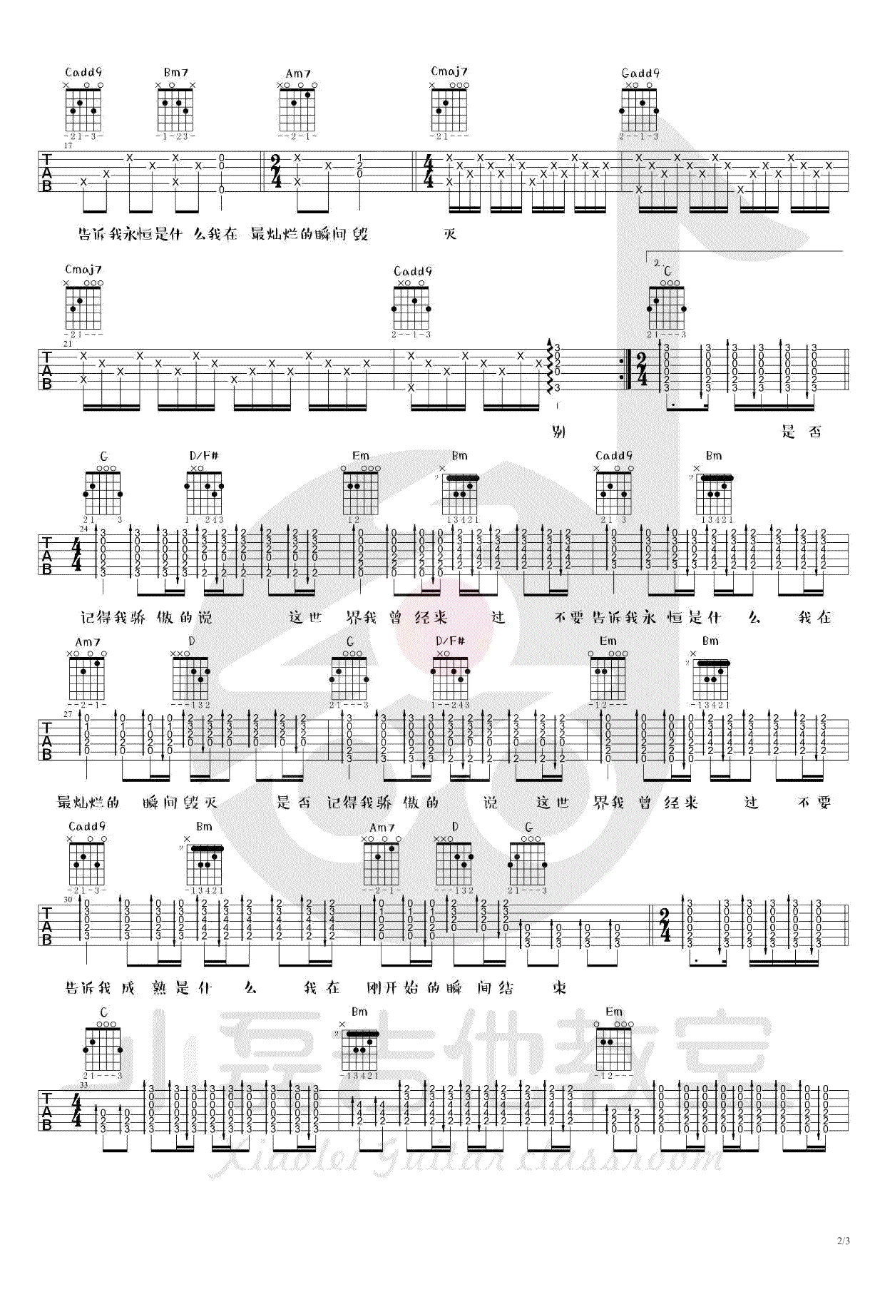 别哭我最爱的人吉他谱 - 吉他教学演示 - 吉他弹唱谱