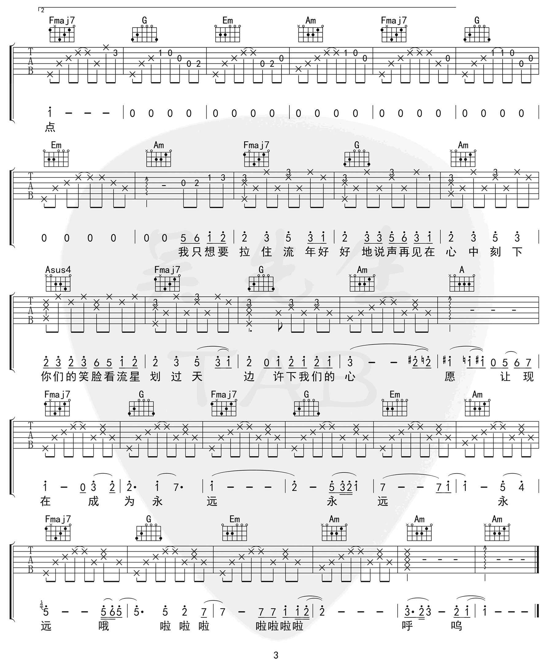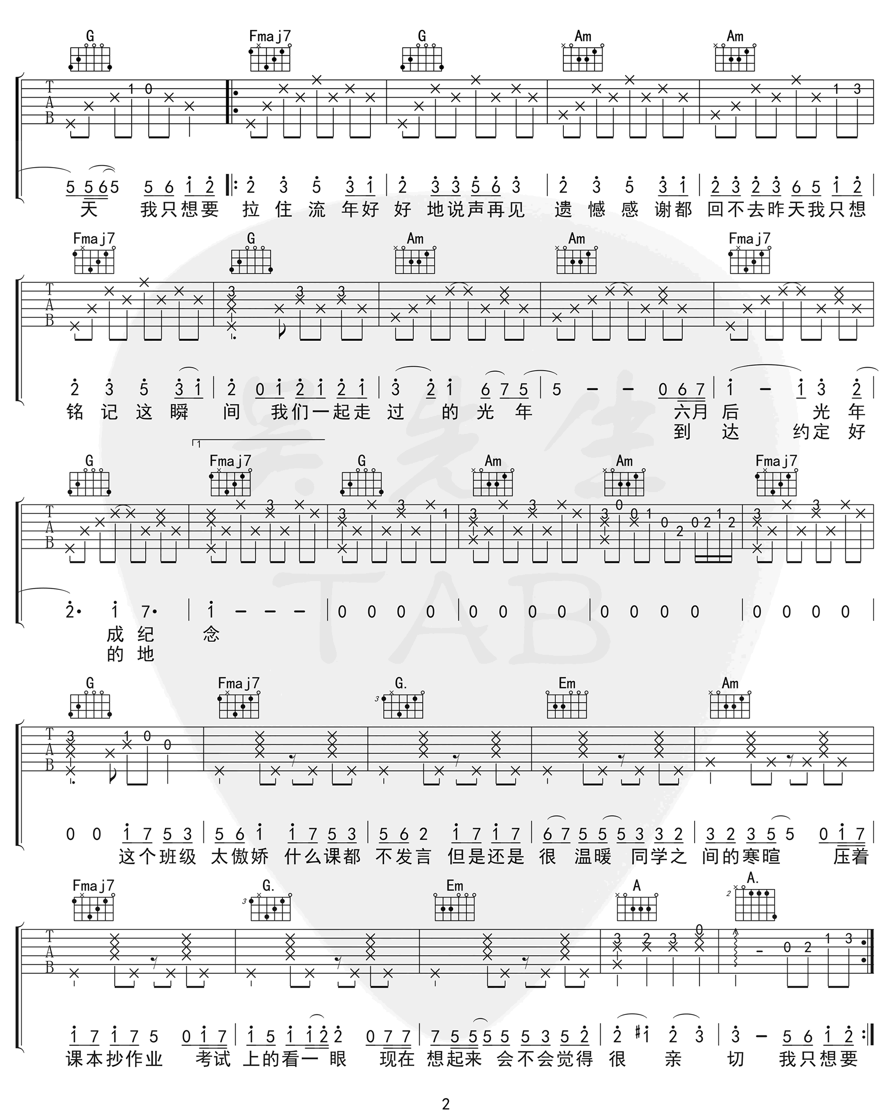 曲谱介绍: 记念吉他谱_雷雨心_《记念》C调原版弹唱谱_高清六线谱分享,《记念》是由雷雨心演唱的一首歌。轻快的旋律,朴实的歌词,这个17岁的女孩雷雨心,音色尚有些稚嫩,但就是这种“瑕疵”,唱出了许多人在毕业前的那种不舍…… 此版本的曲谱来源于吴先生扒谱制谱,歌曲原调为F调,这里采用C调指法根据原版进行编配,演唱时夹变调夹5品回到原调。这首歌编配难度不大,前奏带有少许旋律音十分动听,后面的节奏型及和弦也是比较简单易学。 记念吉他谱_雷雨心_《记念》C调原版弹唱谱_高清六线谱1:
