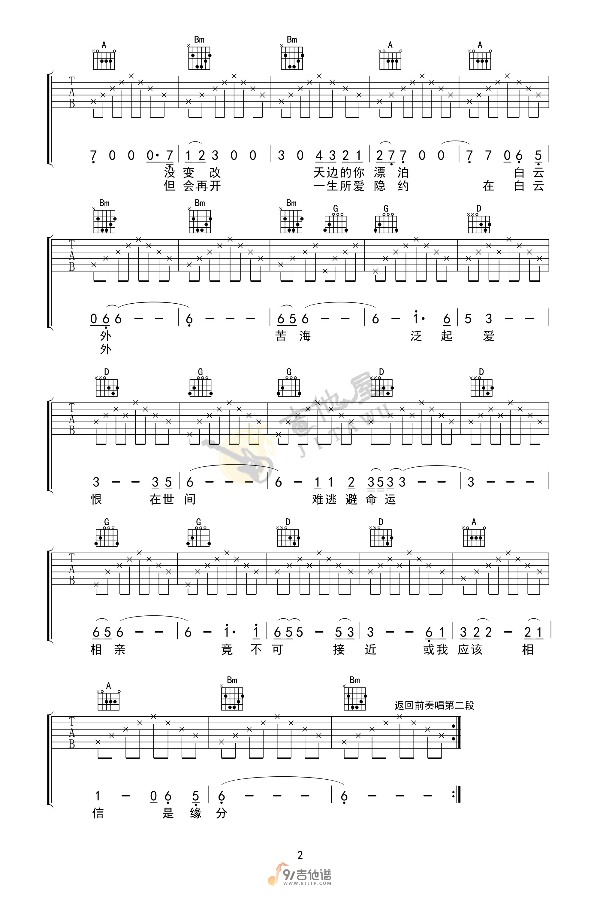 当前位置:琴谱网>吉他弹唱>一生所爱