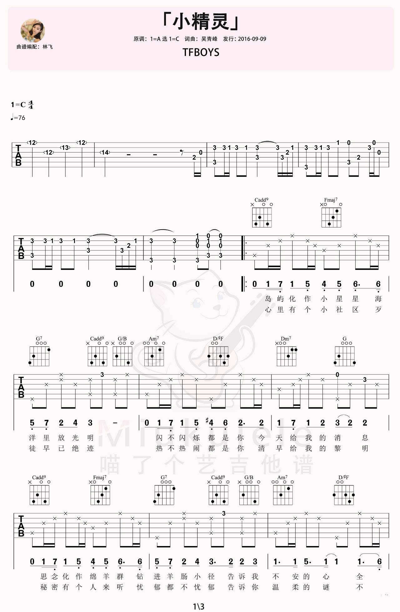 小精灵吉他谱 - tfboys - C调吉他弹唱谱 - 原版
