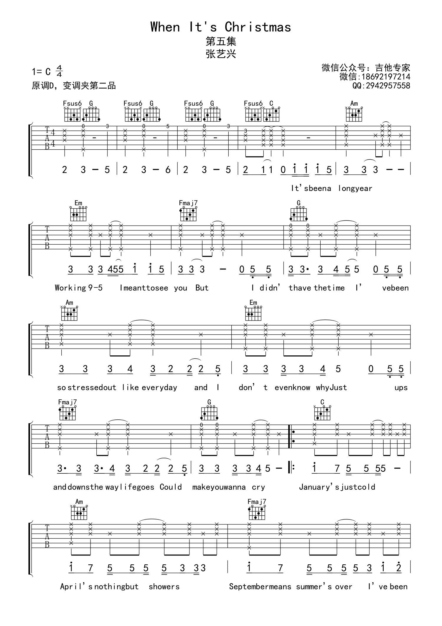 • When It's Christma吉他谱 - 张艺兴 - C调吉他弹唱谱第1张
