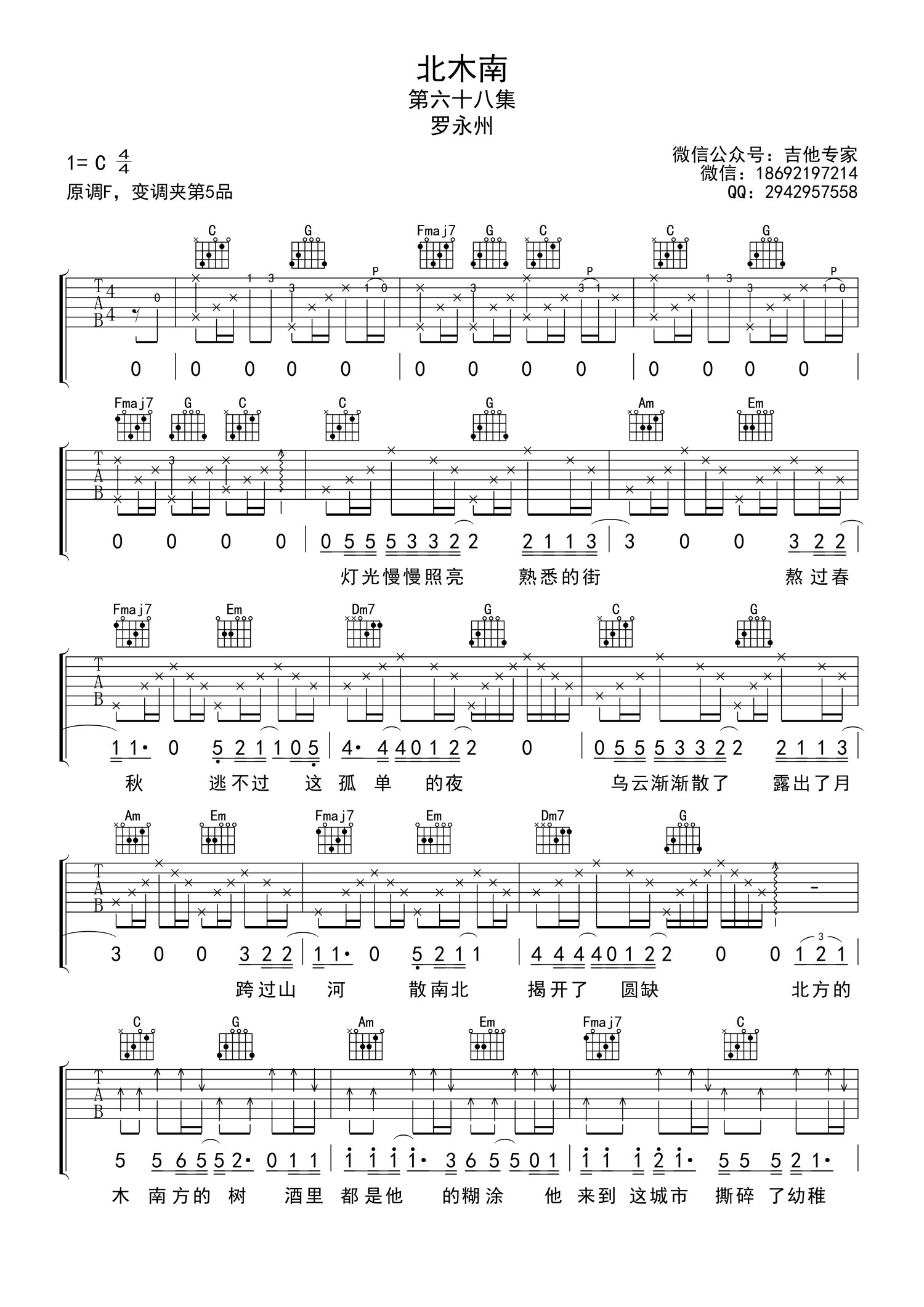 曲谱介绍: 罗永州《北木南》吉他谱_C调吉他弹唱谱