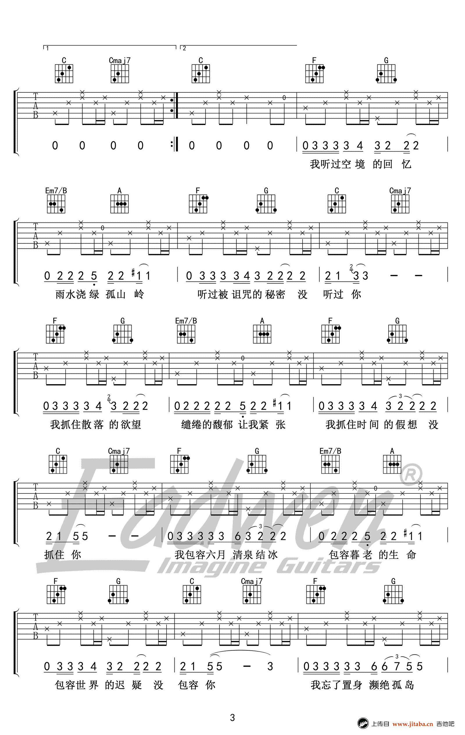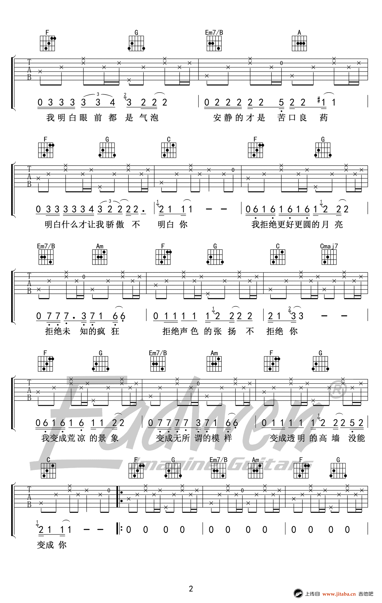 奇妙能力歌吉他教学-陈粒-C调简单版-高清吉他谱 - 奇妙能力歌吉他教学 - C调吉他弹唱谱