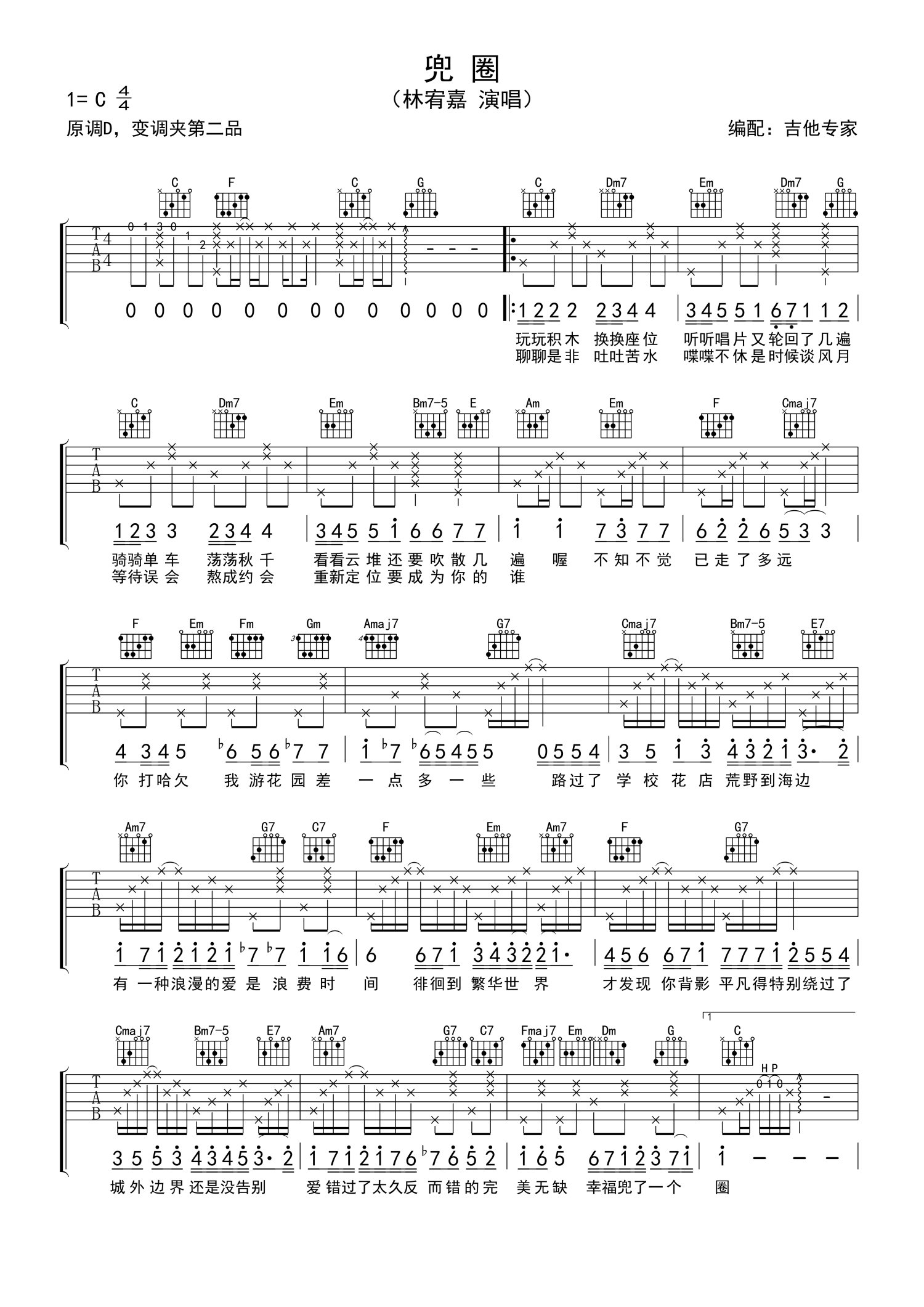 曲谱介绍: 林宥嘉《兜圈》吉他谱_C调吉他弹唱谱