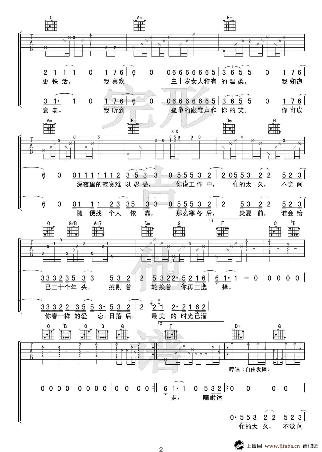 当前位置:琴谱网>吉他弹唱>三十岁的女人