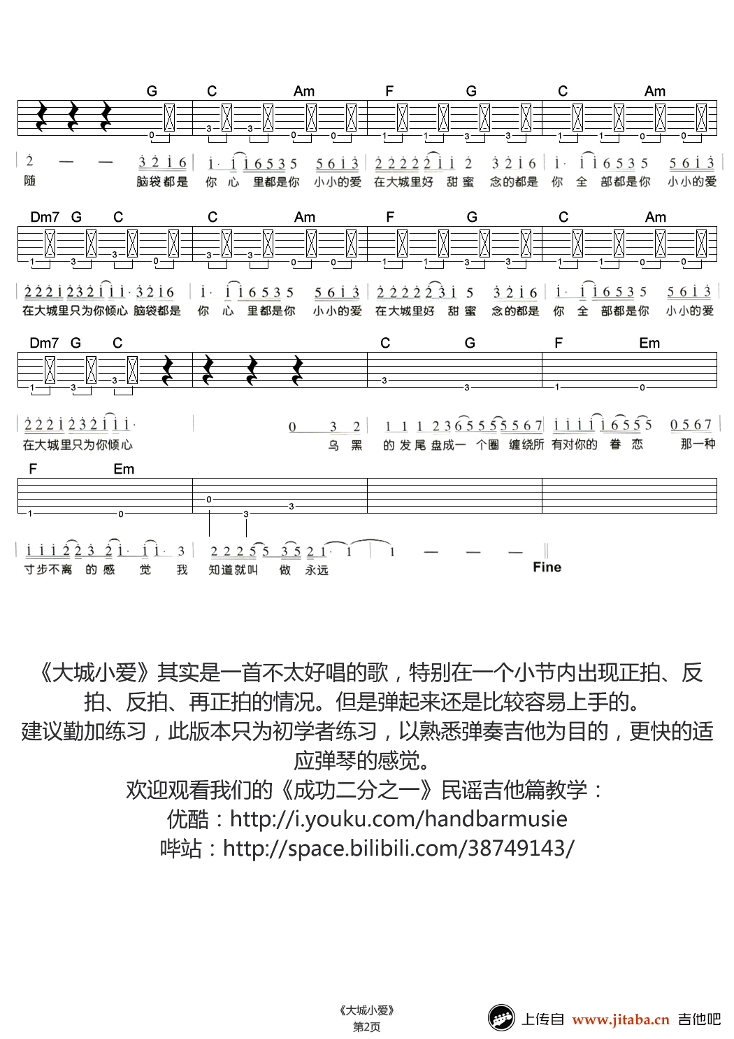 当前位置:琴谱网>吉他弹唱>大城小爱