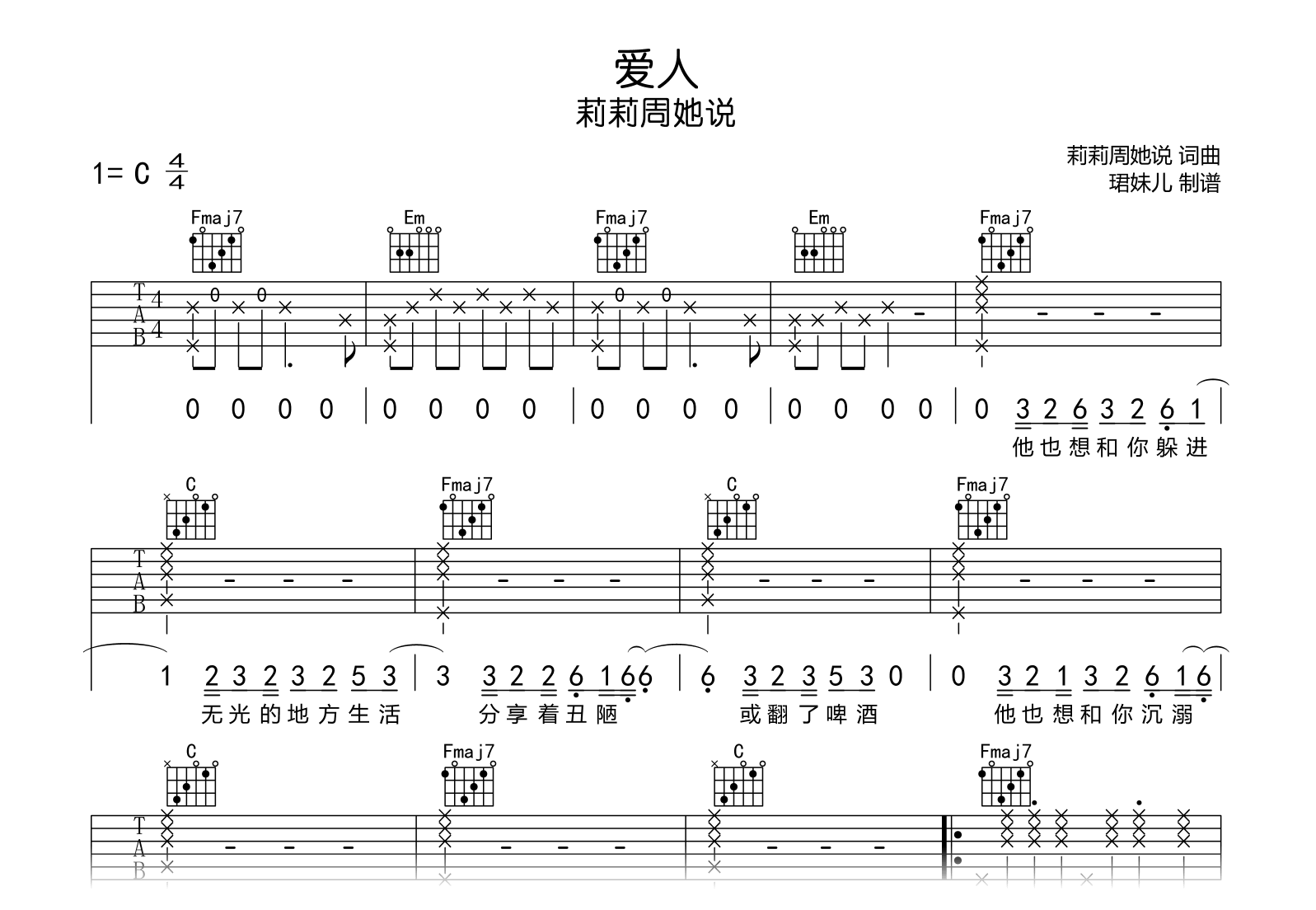 爱人吉他谱 - 莉莉周她说 - C调吉他弹唱谱