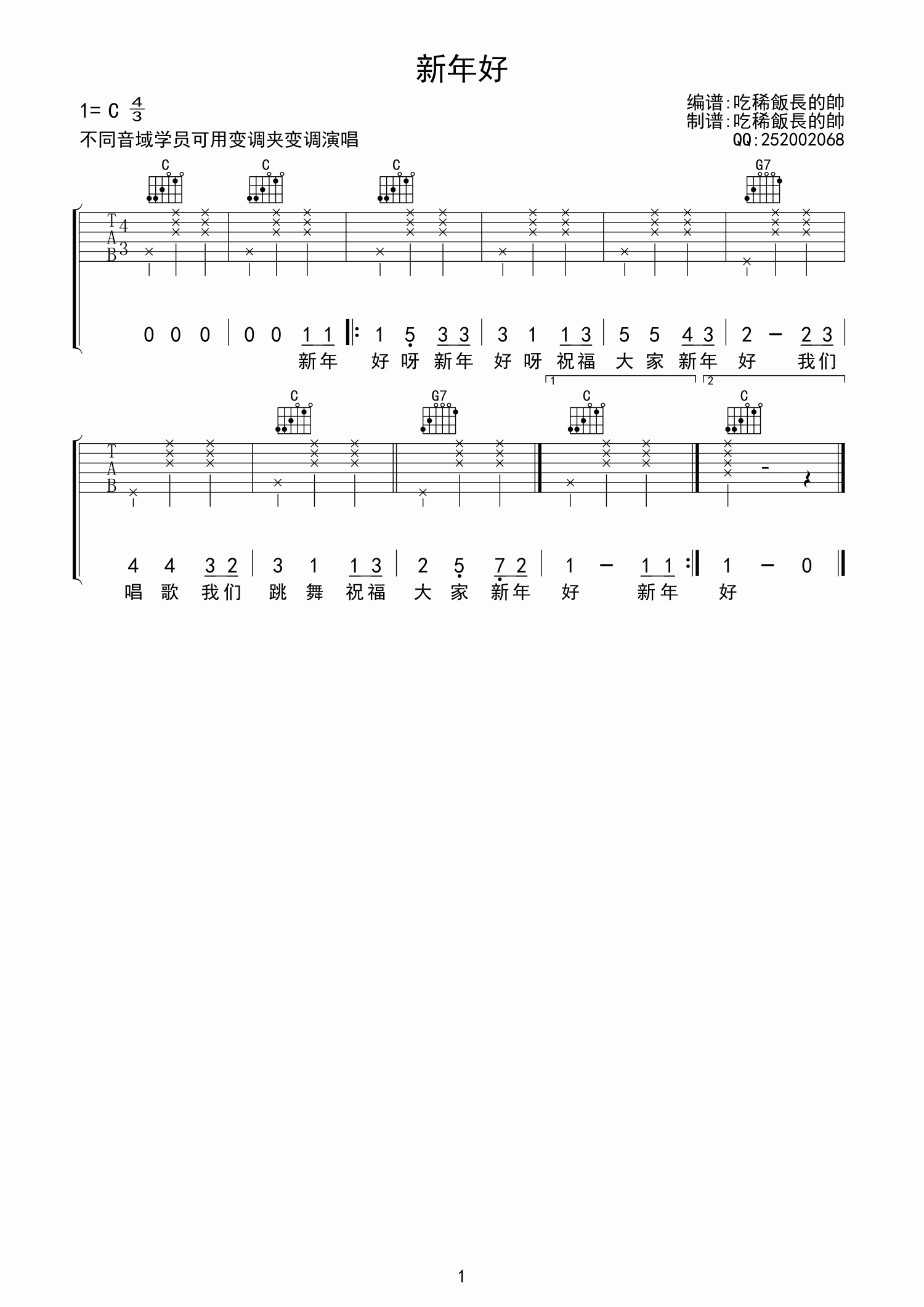 新年好吉他谱 - 儿歌 - C调吉他弹唱谱