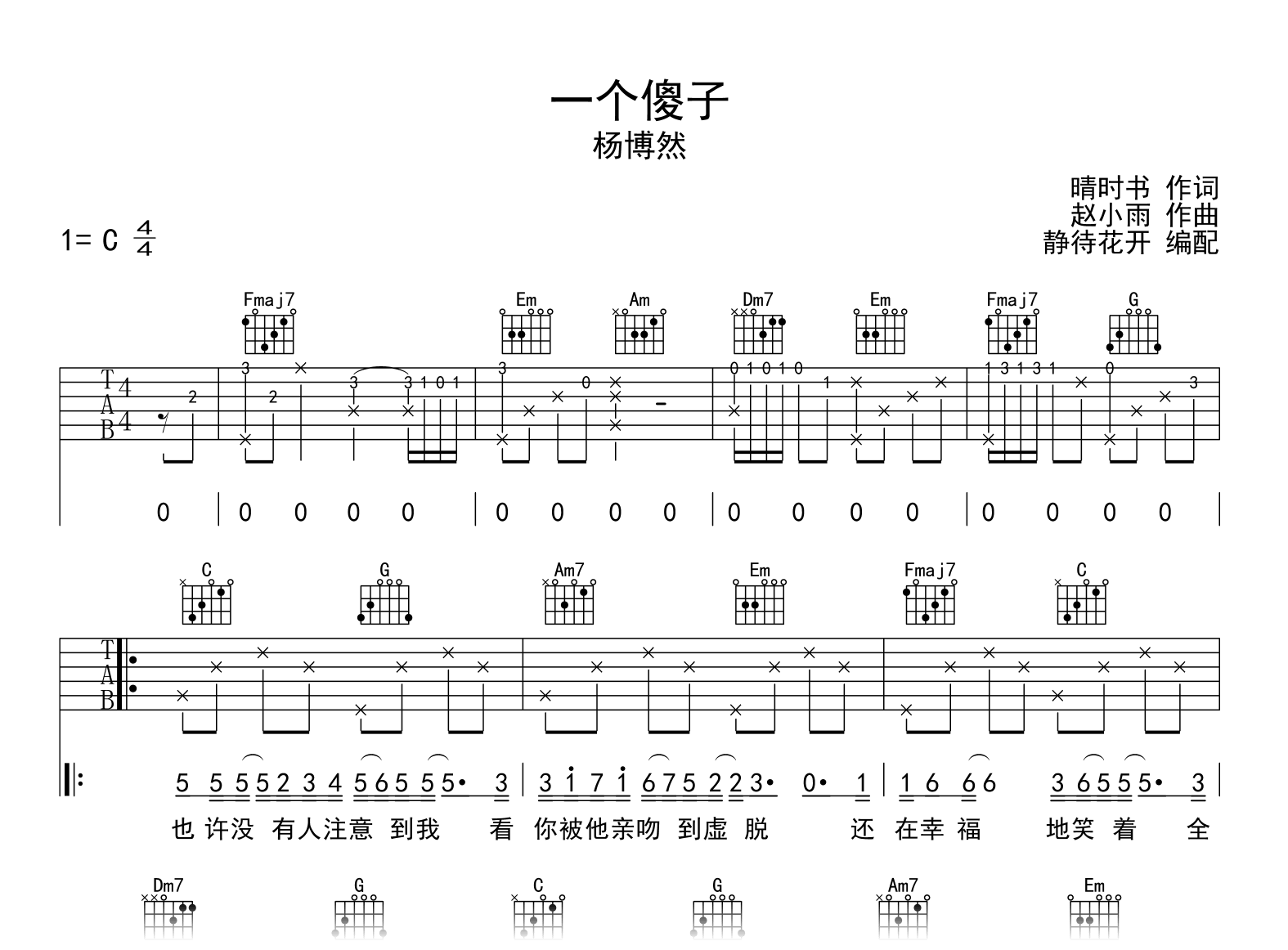 一个傻子吉他谱 - 杨博然 - C调吉他弹唱谱