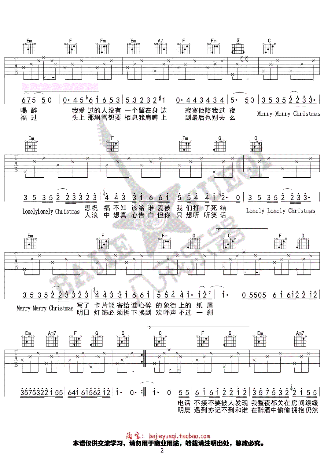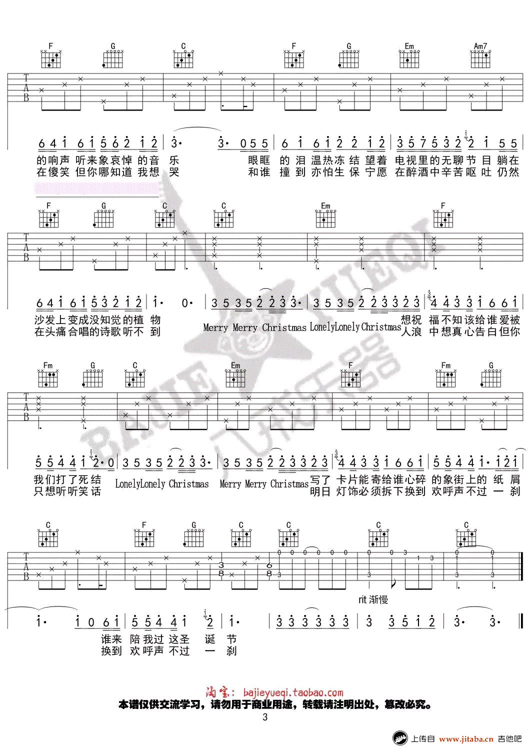 当前位置:琴谱网>吉他弹唱>Lonely Christmas