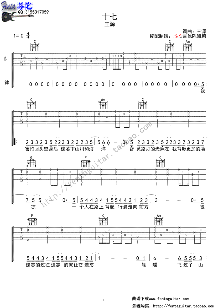 十七吉他谱 - TFBOYS王源 - C调吉他弹唱谱