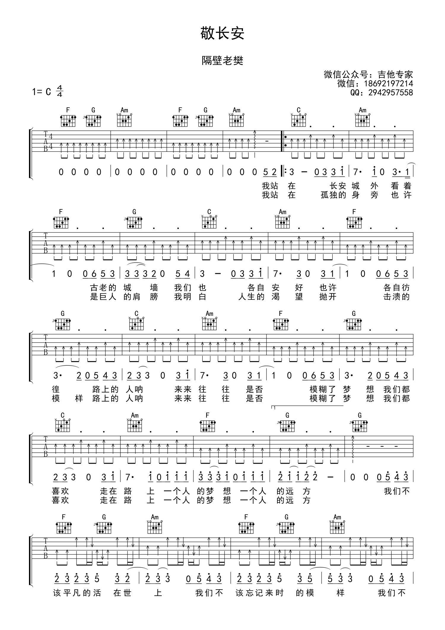 • 敬长安吉他谱 - 隔壁老樊 - C调吉他弹唱谱第1张
