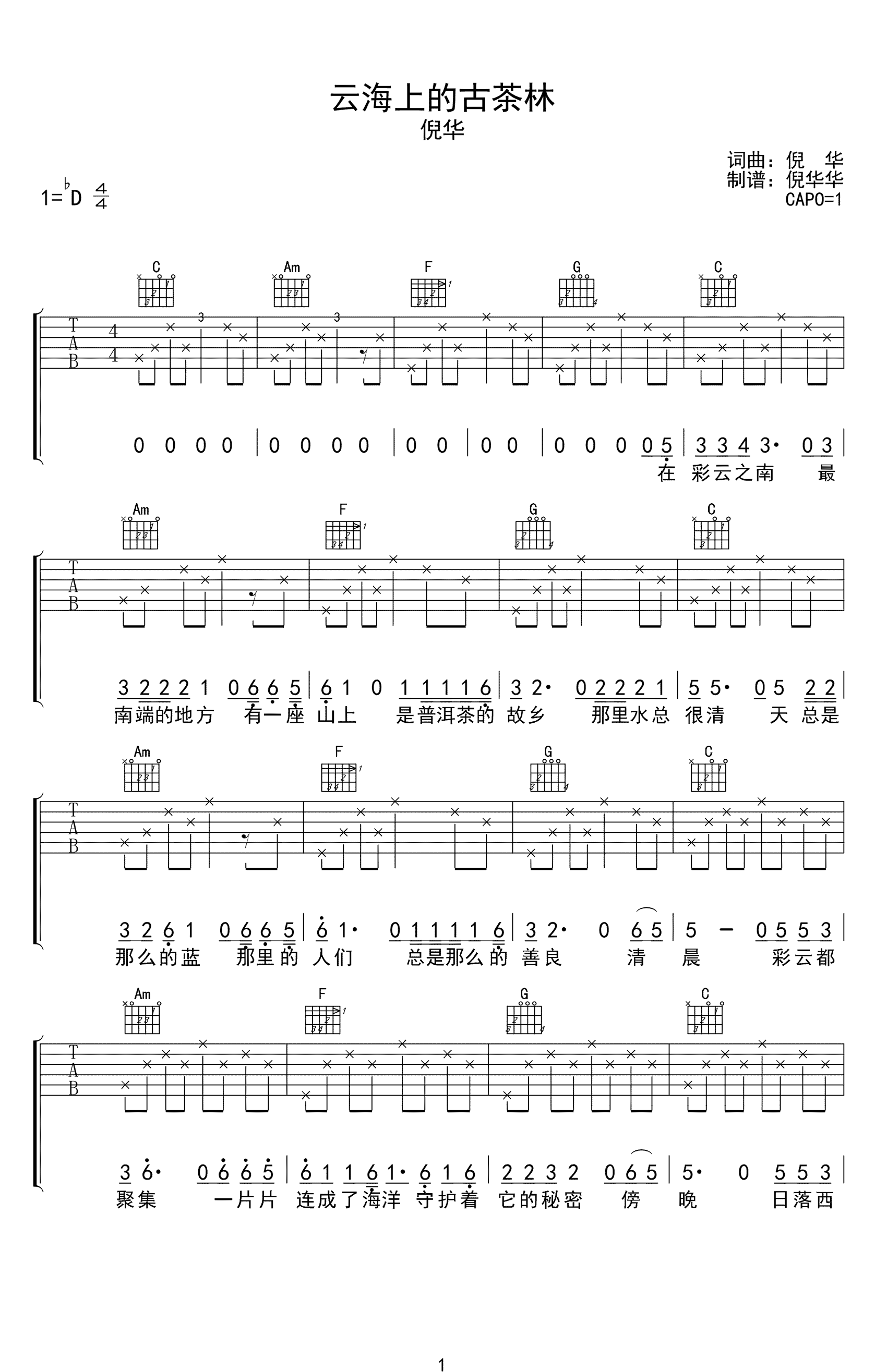 云海上的古茶林吉他谱 - 倪华 - C调吉他弹唱谱