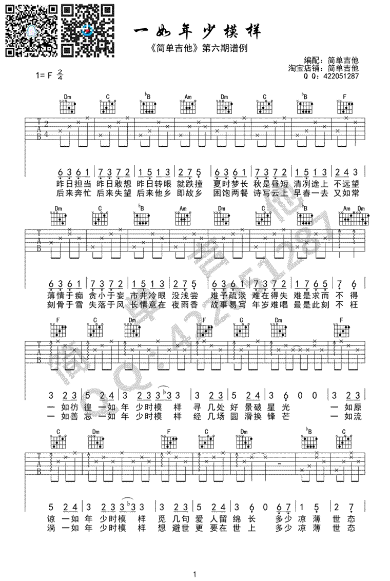 当前位置:琴谱网>吉他弹唱>一如年少模样
