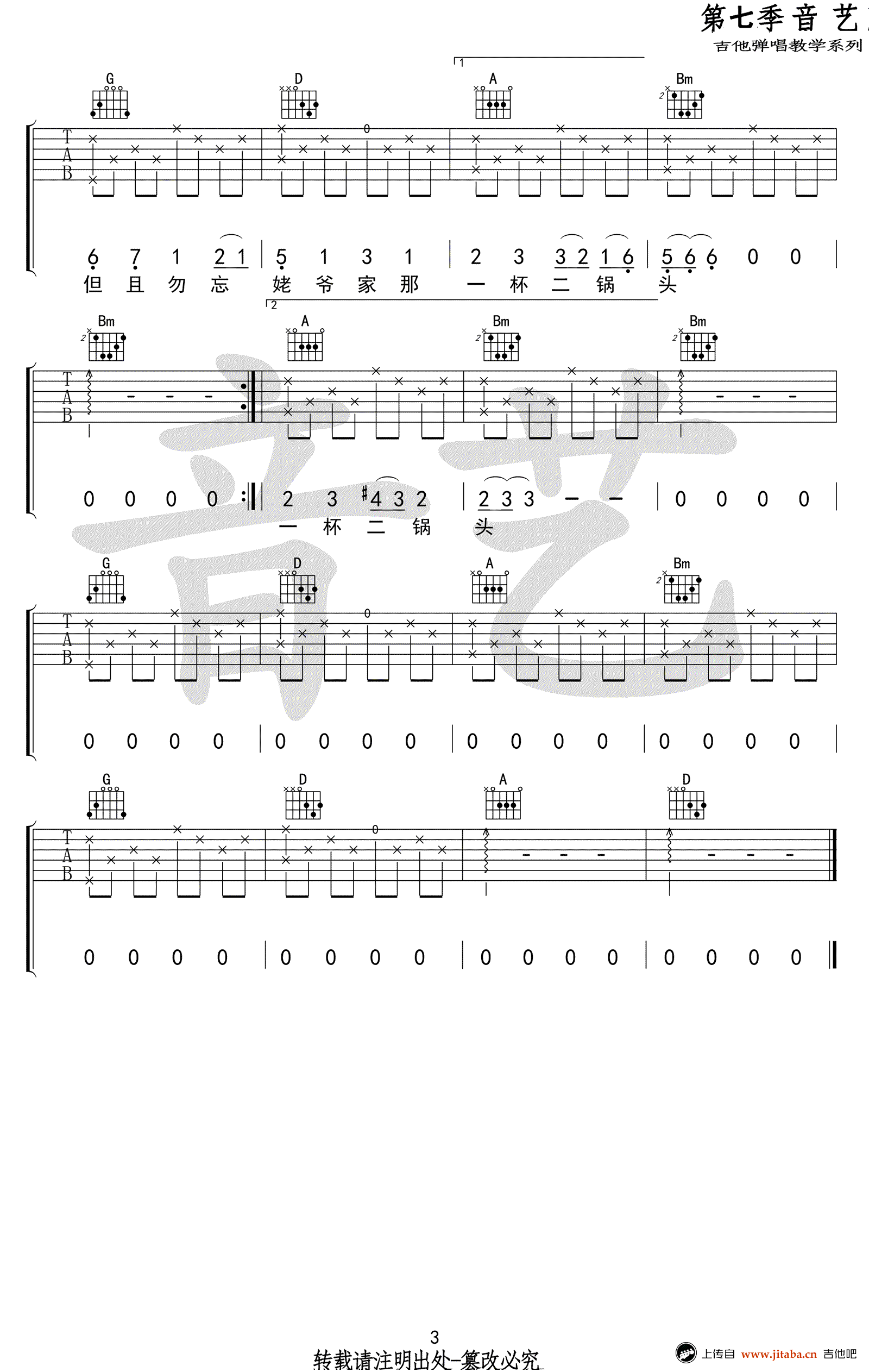 曲谱介绍: 食味吉他谱,陈鸿宇演唱的一首思乡歌谣,C转D调,高清弹唱谱,食味吉他六线谱,三张图片谱例。感谢音艺吉他出品,91吉他谱网站上传推荐。 这首歌,很生活,也很有画面感,其中流露的情绪和感情值得慢慢去品尝体会。配上陈鸿宇的声音,又有了历经岁月的厚重。吉他哼唱中,让人总觉意犹未尽、回味悠长。
