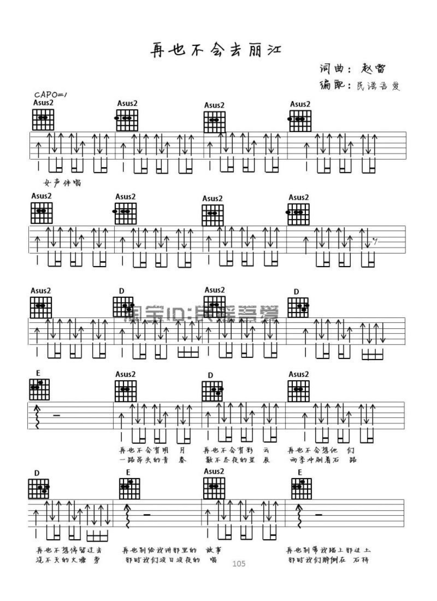 曲谱介绍: 赵雷《再也不会去丽江》吉他谱_民谣歌曲弹唱谱