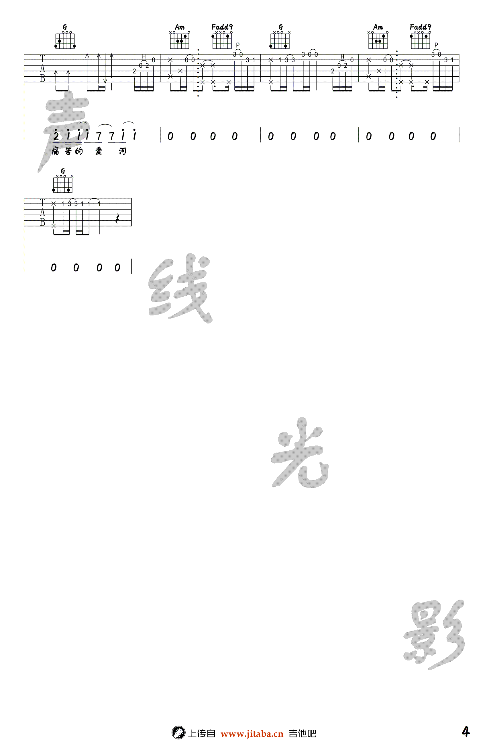 曲谱介绍: 蒋雪儿《爱河》吉他谱,歌曲原调B,选用C调指法编配,吉他降半音调弦。爱河六线谱,完整版共四张高清图片谱例。感谢声线光影出品,小武老师为琴友们带来《爱河》吉他弹唱教学。这首歌曲的前奏比较难,大家参照视频讲解认真练习。