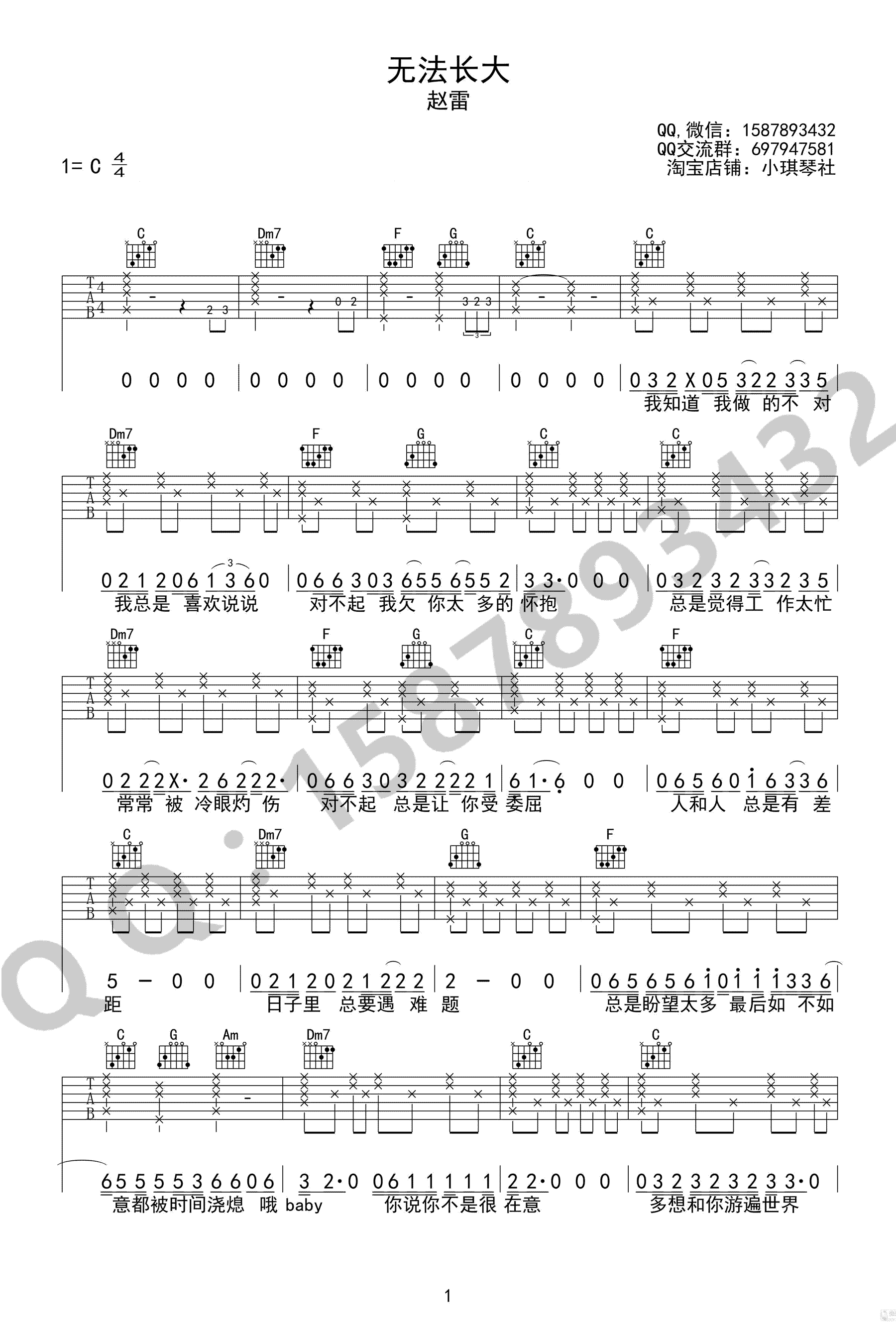 曲谱介绍: 赵雷《无法长大》吉他谱,C调简单版,高清弹唱谱,一首无法长大六线谱,三张图片谱。小琪琴社编配,91吉他谱网站上传。 世界总归是你要迈出那一步的,赵雷的这首歌,唱出了很多人的心声,人生百态,五味杂谈,值得我们去思考并做出选择,不想长大的你,一起来弹唱吧。