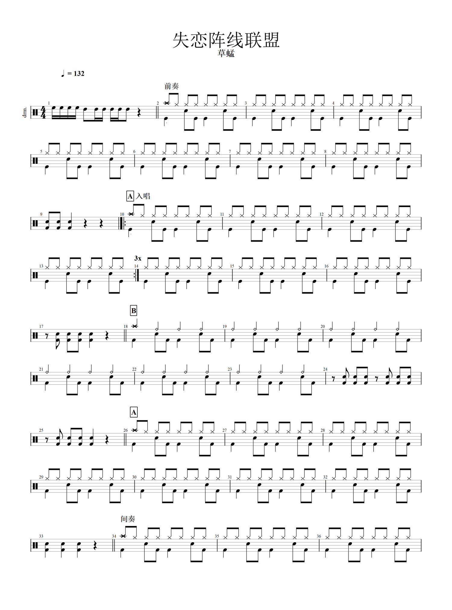 当前位置:琴谱网>架子鼓谱>失恋阵线联盟